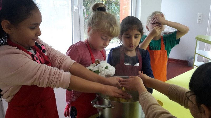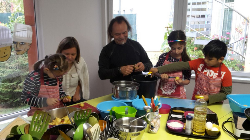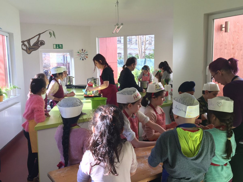 Dank einer hervorragenden Organisation durch die Mitarbeiter vor Ort wurde die kurze Zeitspanne von fast 3 Stunden optimal genutzt. Jeder hatte bis zum gemeinsamen Aufräumen alle Hände voll zu tun. Das 3-Gänge-Menü wurde schneller verputzt als gekocht und mit glücklichen Kindern der Heimweg bei sonnigem Wetter angetreten.