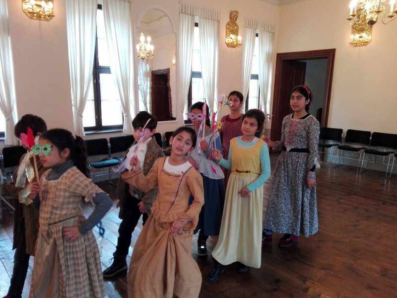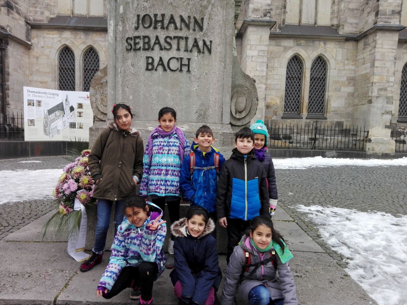 Rund um den 333. Geburtstag von Johann Sebastian Bach besuchten die Klassen 3a, 3b und 8 Kinder der 3c das Bachmuseum. Zunächst erkundeten wir das Museum, konnten eine alte Orgel bestaunen, auf der Bach selbst gespielt hatte, sahen alte Instrumente, inspizierten ein Modell der alten Thomasschule, in der die Jungen des Thomanerchores schon vor 300 Jahren im Internat gelebt hatten und tauchten in Klänge und Bilder ein. Dann bastelten wir barocke Masken mit denen wir dann in barocken Kostümen im historischen Sommersaal ein Menuett tanzten. Das Tolle an diesem Saal ist, dass die Decke, die aussieht wie ein Himmel, nach oben gefahren werden kann und dann dort oben die Musiker gespielt haben. Musik aus dem Himmel!