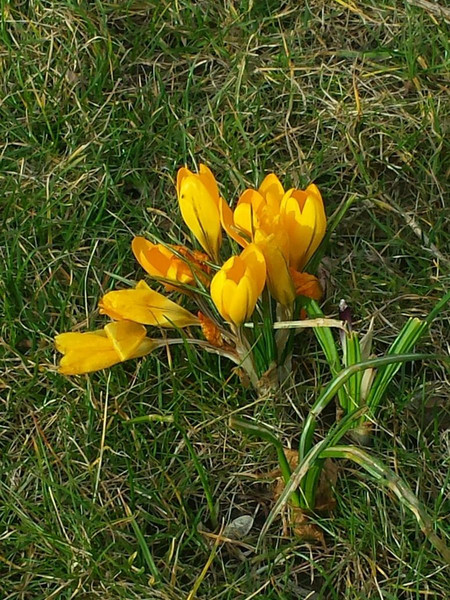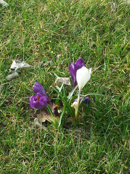 Mit großer Überraschung konnten wir in den Osterferien bunte Farbtupfer auf dem Hof entdecken. Gelbe und lila Krokusse leuchteten auf der Wiese um den Bolzplatz. Die warmen Tage ließen sie schnell wieder verblühen, aber nun wachsen Narzissen nach. Auf einer weiteren Wiese können Blausterne bewundert werden.