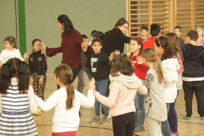 Unsere Projektwoche im September war eine schöne Erfahrung mit 15 verschiedenen Angeboten, die teils außer Haus, teils in der Schule oder Sporthalle stattfanden. Da die Kinder der Klassenstufen 2 bis 4 an drei Tagen gemeinsame Projekte besuchten, konnte der soziale Austausch intensiver stattfinden als üblicherweise nur in den Pausen auf dem Schulhof. Wir hoffen durch die intensiveren Kontakte auf langfristige Verbesserung des Schulklimas.