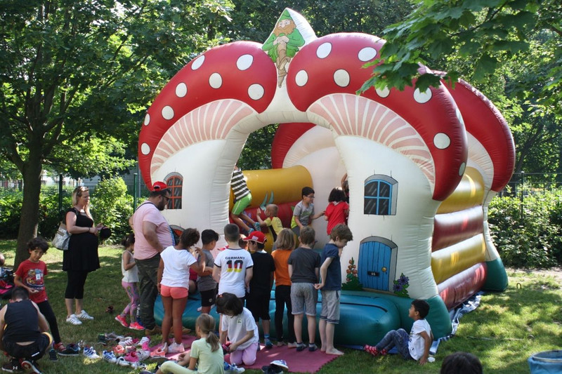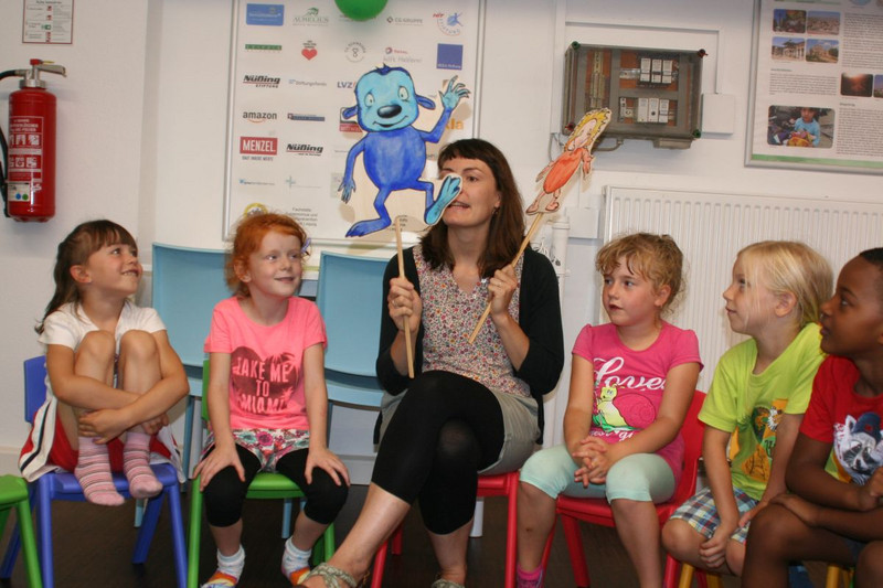 Angeleitet von einer Pädagogin erfuhren die Kinder die Geschichte von „Irgendwie Anders“, einem kleinen blauen Wesen ohne Freunde. Mit wachsender Begeisterung lauschten unsere ABC-Schützen wie die Geschichte dann doch ein gutes Ende findet. Bevor das große Klettern, Springen und Toben begann, durfte jeder seinen ganz persönlichen Handabdruck auf einem „Irgendwie-Anders-Plakat“ hinterlassen. Nach einer ausgelassenen Stunde auf den gut gepolsterten Rutschen, Klettergeräten und Trampolinen fanden sich alle zu einer freundschaftlichen Abschlussrunde zusammen. Auch wenn es sicher immer wieder mal Streit geben wird, wir finden: Nach diesem Ausflug sind unsere Schulanfänger ein kleines Stück näher zusammengerückt.