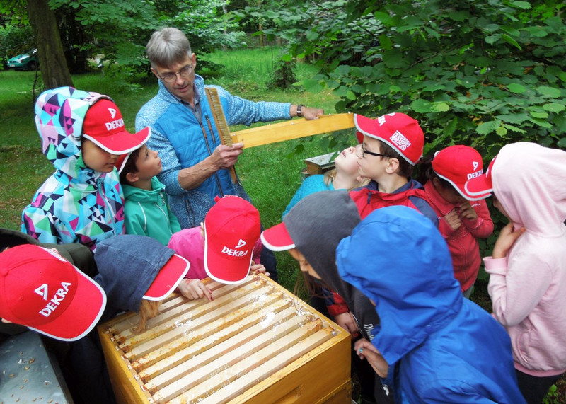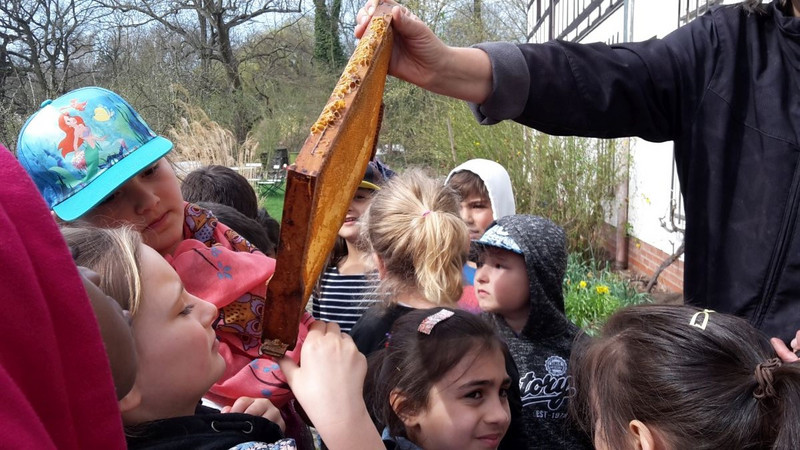 Das durften die Kinder der zweiten Klassen hautnah erfahren. Nachdem wir die Schafe und Lämmer gefüttert und getränkt haben, durften wir uns ein Bienenhaus von der der Nähe ansehen. Wie der Honig aus der Wabe kommt wissen wir jetzt auch.