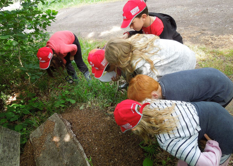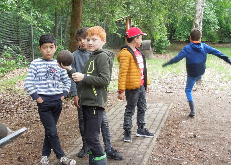 Nach dem Mittagessen hatten die Kinder Freizeit. Kegelbahn, Kicker, Billard, Schach und und und – langweilig wurde niemandem. Schon gar nicht bei der nun anstehenden Waldrallye. In zwei Gruppen aufgeteilt, ging es mit dem Kompass in den Wald. Zwölf Stationen mussten gefunden und dann jeweils eine Frage beantwortet bzw. eine Aufgabe erfüllt werden. Unterwegs stießen die Kinder auf einen Ameisenhaufen, kamen am Hirschgehege vorbei und entdeckten u. a. auch noch eine Blindschleiche. Letztere hatte allerdings bereits das Zeitliche gesegnet, doch dem Forschergeist der Kinder tat das keinen Abbruch. Eine tote Blindschleiche + ein Ameisenhaufen = ?
