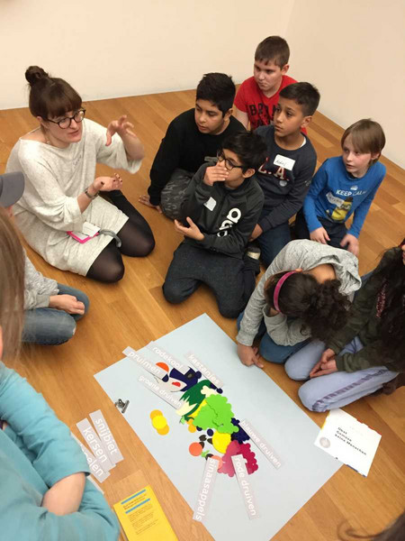 Dort erhielten die Kinder durch das Kunstprojekt „Opgeweckte Detective“ auf spielerische Weise Einblicke in die niederländische Malerei des 17. Jahrhunderts. Durch verschiedene kleine kreative Aufgaben, die in Gruppenarbeit gelöst wurden, konnten die Schüler am Ende das Rätsel lösen und das gesuchte Bild finden.
