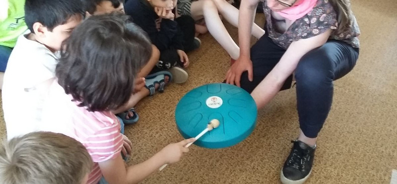 Das ist wirklich wahnsinnig fantastisch und so war ein Höhepunkt im Mai das gemeinsame Auspacken der frisch eingetroffenen Instrumente. Durch diese Gelder ist es uns möglich auch Instrumente anzuschaffen, für die normalerweise keine Mittel zur Verfügung stünden und so kann sich unser Chor und somit unsere Schule über eine Dabuka, ein großes Becken, ein neues Metallophon, ein Alt-Psalter, eine Nataraj - Zungentrommel, eine Doumbek, eine riesige „Ocean-drum“ und neue Bassklangbausteine freuen.