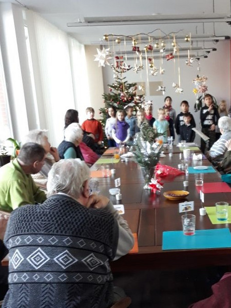Am 07.12. startete unser Schulchor zu seinem ersten Auftritt. Begleitet von Frau Hertel fuhren wir in den Leipziger Westen um die Senioren der „Tagespflege am Lindenauer Markt“ mit Weihnachtsliedern zu erfreuen. Die 16 Sängerinnen und Sänger erlebten, wie schön es ist andere Menschen mit Singen zu erfreuen und dass sogar eine alte Dame bei „Maria durch ein Dornwald“ vor Rührung zu Weinen begann, das war schon sehr beeindruckend.