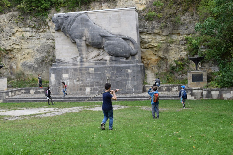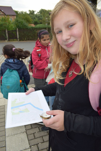 Am 8. September fand in Begleitung von zwei Lehrerinnen, einer Lehramtsstudentin und einer Mutter der Wandertag der 4a statt. Morgens ging es mit dem Regionalzug zum 75 Km entfernten Kurort Bad Kösen, der idyllisch an der Saale liegt. Mit Kompass und Landkarte ausgestattet sollten die Kinder kurz nach der Ankunft am Bahnhof den Weg zur Fähre finden, was ihnen sehr gut gelang. Mit der Querseilfähre überquerten wir dann auf direktem Weg die Saale. Im Anschluss begann die eigentliche Wanderung von mehreren Kilometern durch dichten Wald. Oben angekommen, legten wir auf einer Wiese eine knapp einstündige Pause mit Picknick ein. Mit großer Neugier wurden Spinnen, Käfer und andere Insekten beobachtet. Damit keine Langeweile aufkam, spielten die Schüler außerdem Ball und zeigten sich sehr engagiert im Spiel „Falke und Rabe“, in dem die Klassenlehrerin Frau Stanisch Aussagen machte, die die Kinder nach richtig oder falsch beurteilen und – je nach Gruppenzugehörigkeit (Falken = falsche Aussage oder Raben = richtige Aussage) – Mitglieder der anderen Gruppe fangen mussten. Der Wanderweg führte uns weiter zum Monument für Gefallene des 1. Weltkriegs – ein riesiger Löwe, den die Kinder von allen Seiten bestaunten. Höhepunkt der Wanderung war die Besichtigung der Burgruine Rudelsburg. Vom Aussichtsturm, auf dem uns ein kräftiger Wind um die Ohren wehte, hatten alle einen fantastischen Blick über das Saaletal. Danach führte unser letzter Wanderabschnitt bergab zu einer Anlegestelle, von der wir mit einem Boot in einer 30-minütigen Flussfahrt zurück zum Kurpark in Bad Kösen fuhren. Am späten Nachmittag erreichten wir nach der Zugfahrt etwas erschöpft, aber rundum zufrieden Leipzig.