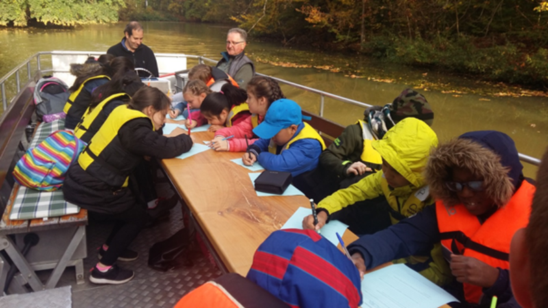 Am 18. Oktober durften wir, die Klasse 4a, als Testgruppe am neu erstellten Projekt der DHfK „Wasser und Wald teilnehmen“. Startpunkt war der Bootsverleih Klingerweg, ab welchem wir in einem Motorboot über Weiße Elster, Elsterflutbett und Pleiße sowie Floßgraben bis zum Wildpark fuhren und dabei unter fachkundiger Führung viel Wissenswertes über Leipzigs Gewässer kennenlernten. Zwischendurch wurden an verschiedenen Stellen Wasserproben genommen, die wir im Wildpark untersuchten. Der Floßgraben hat das klarste Wasser!