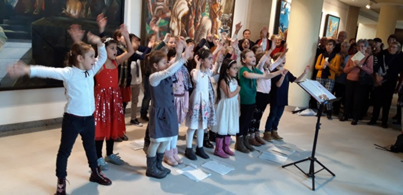 Am 22. November 2018 haben uns im Rahmen des Projektes „Brücken bauen über Gräben“ der Leipziger Notenspur ein russisches sowie ein ukrainisches Ensemble besucht. Die 4. Klassen bekamen zunächst ein tolles Konzert zu hören. Dann musizierten wir alle gemeinsam das wunderschöne deutsche Herbstlied „Bunt sind schon die Wälder“ und das russische Weihnachtslied „Влесу родилась ёлочка“. Wir sangen den deutschen Text aber Anhelina und Arina gaben uns zwei Strophen auf Russisch zum Besten. Roman, der aus der Ukraine stammt, hat nicht nur gedolmetscht, sondern „Schtschedryk“ das bei uns unter dem Namen „Carols of the bells“ bekannte ukrainische Weihnachtslied im Original gesungen. Zum Abschluss unseres kleinen Konzertes musizierten alle 4. Klassen zusammen mit den Musikern die „Europahymne“ das Prelude aus M.A.Charpentiers „Te Deum“.