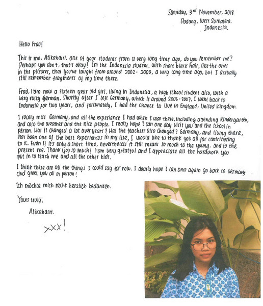 Er übergab einen Brief mit Fotos von Atikahasri und sprach seine Grüße aus.