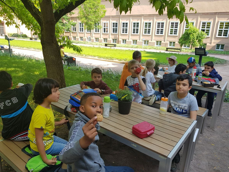 Auf dem Schulhof wurden Toilettencontainer "bestaunt". Da die Schultoiletten derzeit saniert werden, ist es für die Schüler und Lehrer bis auf Weiteres notwendig, die Toilettencontainer zu nutzen. Um die Sicherheit der Kinder zu gewährleisten, wird der Schulhof mit einem Absperrzaun abgesichert und das Tor "Zugang Rabet" ab 8.00 Uhr geschlossen. Eltern und Kinder, die nach 8.00 Uhr zur Schule kommen, müssen den Eingang Neustädter Straße nutzen.