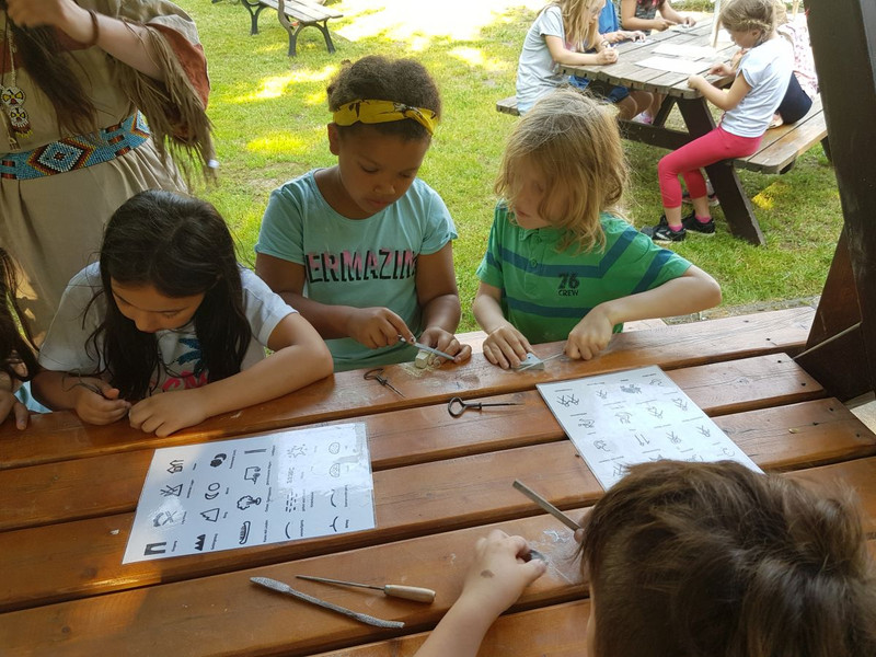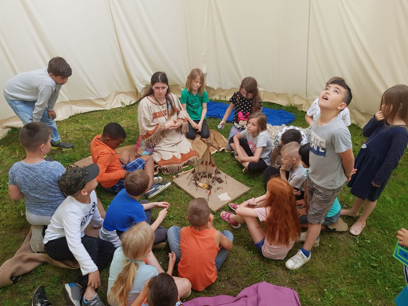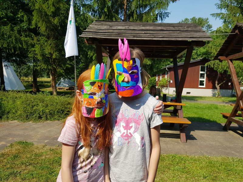 Am zweiten Tag durften wir in das Leben der Siuox eintauchen. Die Kinder stellten unter Anleitung von zwei Stammesangehörigen Masken, Ketten und Armbänder her. Auch Indianertänze und Bogenschießen standen auf dem Programm.