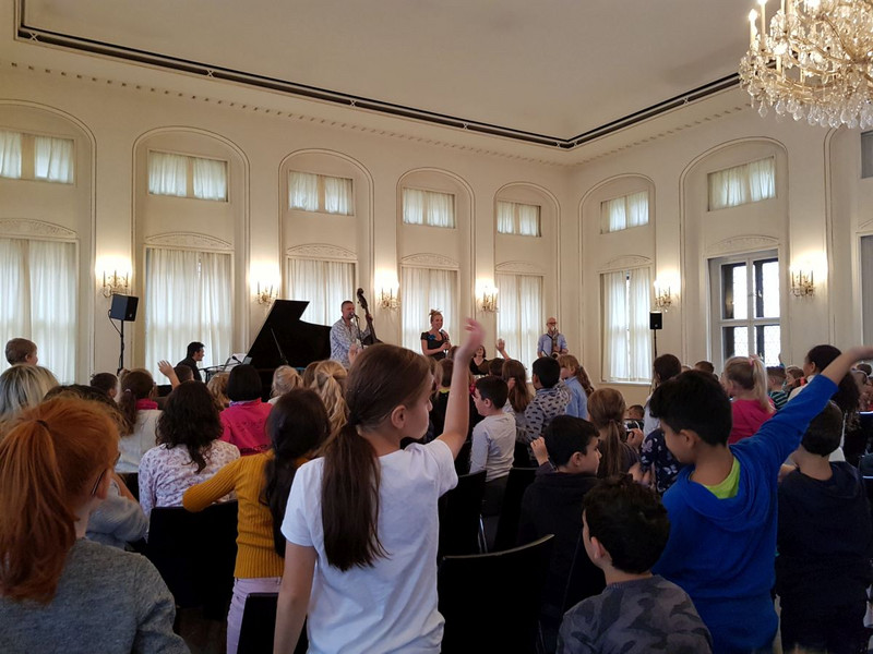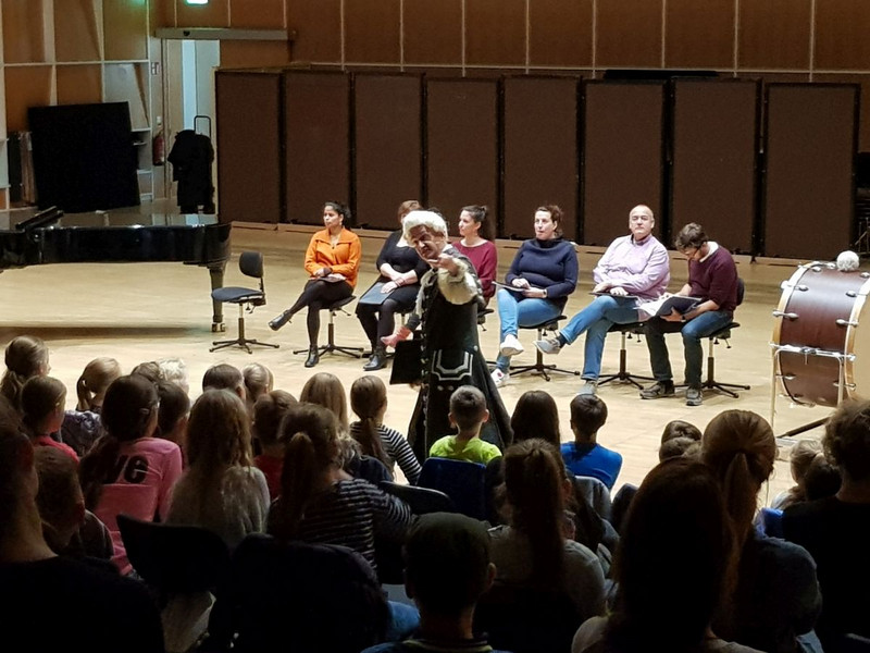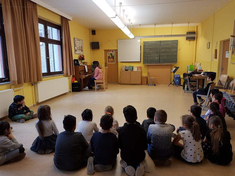 Es wurden Teile aus Vivaldis Jahreszeiten gespielt und dann wurden wir von Gewandhausmusikern bei unseren Liedern begleitet. Zum Schluss durften die Kinder noch zu Vivaldis Sommergewitter mitspielen.