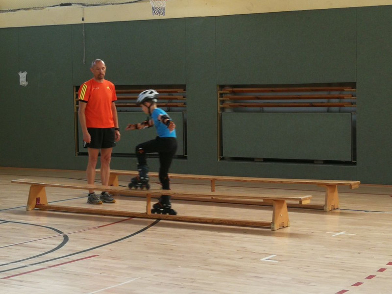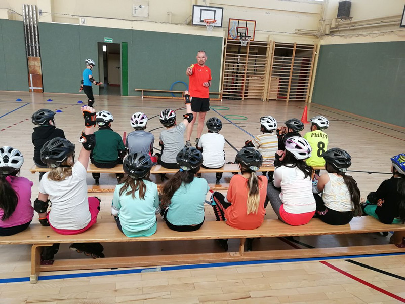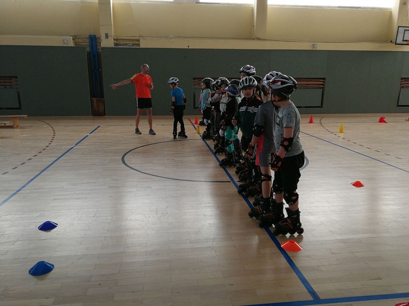 Seit drei Jahren findet in unserer Schule für die Drittklässler im 14-tägigen Rhythmus Inlineskaten statt. Ein engagierter Trainer führt mit Unterstützung der Sportlehrer das Training durch. Spielerisch lernen die Schüler verschiedenste Skatetechniken. Am Ende des Schuljahres freuen sich alle auf die Überprüfung Ihres Könnens und jeder erhält das Skateabzeichen in „Bronze“. Die Besten können sich außerdem beim Sportfest auf einem Inlineskate-Parcour miteinander messen. Finanziert wurde dieses Projekt durch Gelder von „Schule mit Zukunft“.