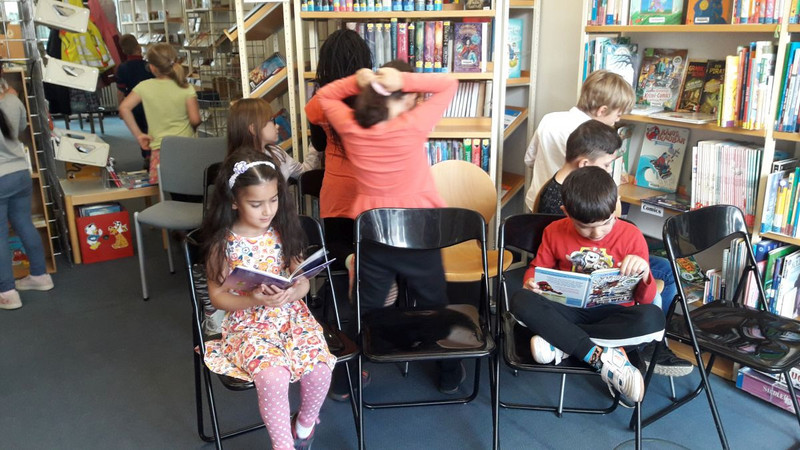 Wir - die Leseratten der 1d - besuchten am 28. Mai 2019 die Bibliothek Volkmarsdorf am Torgauer Platz. Nach einer lustigen Geschichte über die Olchis hatten wir sehr großen Spaß, all die Bücher, Filme, CDs, Spiele und Comichefte zu durchstöbern. Dabei fanden wir viele lustige, spannende und interessante Geschichten, in die wir uns gleich vertiefen konnten.