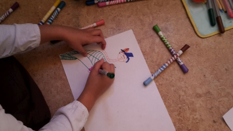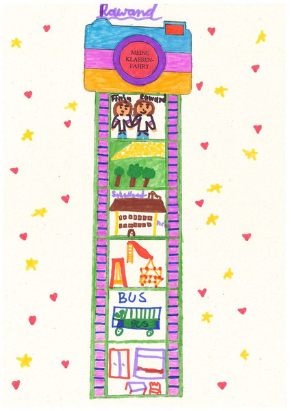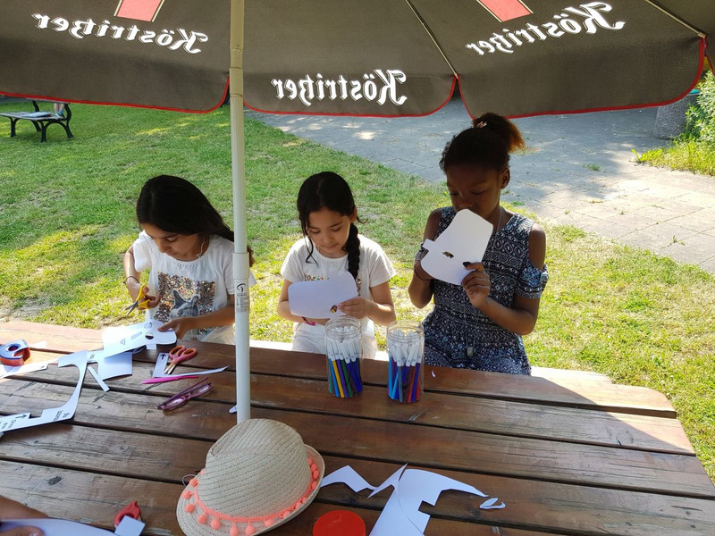 Bringt bitte eine Kinderschere, Buntstifte und Turnschuhe in einem kleinen Rucksack mit.