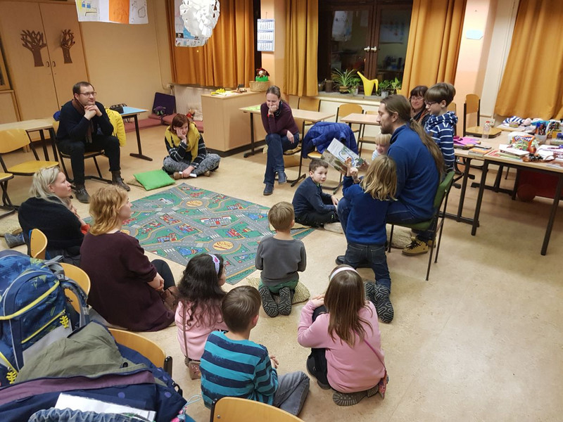 Gestern fand der 1. Leseabend an unserer Schule statt. Zwei Stunden lang haben engagierte Lehrer und Eltern in sechs verschiedenen Klassenräumen spannende Geschichten vorgetragen, denen unsere Kinder aufmerksam gefolgt sind.