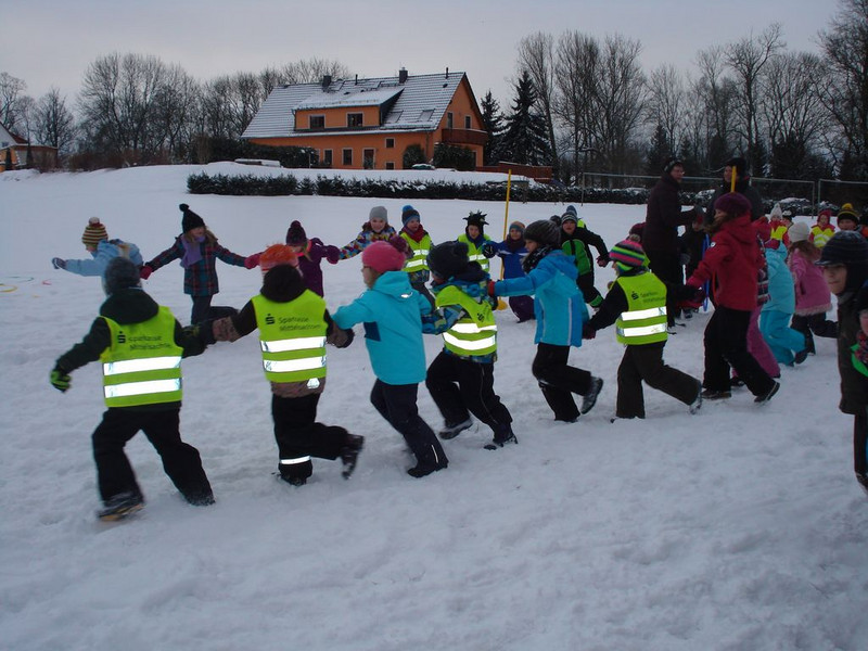 Wir folgten am 27. Januar 2015 der Einladung „Risiko-Raus“ von der Unfallkasse Sachsen. Mit einem Sonderbus fuhren wir nach Brand-Erbisdorf in die Bergstadthalle. Dort warteten schon Frau Grit von Wolfersdorf (Sportkoordinatorin) und Herr Andreas Paul /(Kinder- und Jugendeventservice INGOYsports) auf uns. Noch vier weitere Grundschulen waren mit uns am Start (Brand-Erbisdorf, Weißenborn, Oberschöne u. Reinsberg). Eine Mannschaft bestand aus 12 Schülern (2 Mädchen u. 2 Jungen aus den Klassen 2,3,4) + 2 Ersatzsportler. Dann ging es endlich los. Vor jeder Spielrunde wurden uns der Verlauf erklärt und gezeigt. Wir mussten durch, über, um Parcours laufen, Gegenstände über Hindernisse werfen, auf Rollbrettern uns fortbewegen, einen Gegenstand aufbauen, Ballübungen u.v.a. Eine tolle Stimmung herrschte in der Halle. Schnelligkeit und Geschicklichkeit waren bei jeder Runde gefragt. Und wir waren gut. Zum Schluss erreichten wir einen tollen 2. Platz. Die ersten zwei Plätze haben sich für die Endrunde am 17. März 2015 qualifiziert. Jeder bekam eine Urkunde. Danke auch an die Fans, die uns anfeuerten. Teilnehmer: Kl. 2 Nele Fischer, Hannah Siemon, Lena Thiess, Lucas Zachrau, Lorenz Träger, Paula Rothe Kl. 3 Pinja Göhler, Shanice Kaden, Dominik Schubert, Roy Lorenz Kl. 4 Florence Heymann, Maxie Köhler, Richard Wolf, Niels Fischer