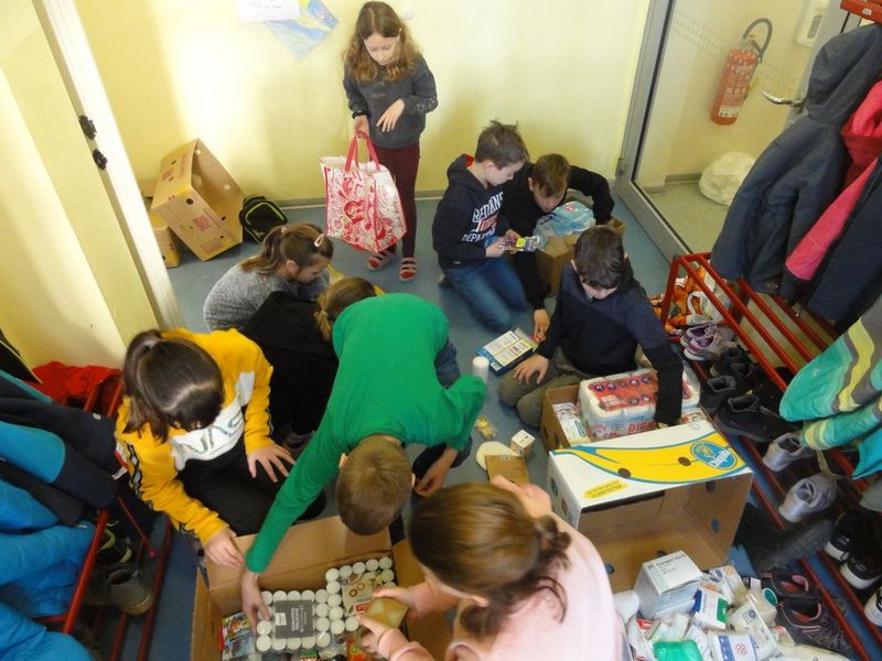 Aufgrund des schrecklichen Krieges in der Ukraine hatte unsere Klassenlehrerin Frau Frenzel die Idee, eine Spendenaktion zu organisieren. Wir Kinder der Klasse 4b fanden die Idee super und waren sofort mit vollem Eifer dabei: Wir legten eine Liste an, in die jeder seine Artikel eintragen konnte, die er spenden wollte. Nachdem wir die Sachen in die Schule gebracht hatten, sortierten wir diese und packten sie in große Bananenkisten. Gemeinsam mit dem Papa von Moritz Frost, Frau Frenzel und ihrem Mann sowie Moritz Frost und Nico Rosenhahn brachten wir die nunmehr 14 Kisten zu einer zentralen Sammelstelle nach Dresden. Wir hoffen, dass unsere Spenden ein wenig helfen und dass der Krieg ganz schnell vorbei ist.