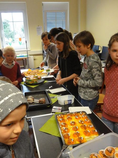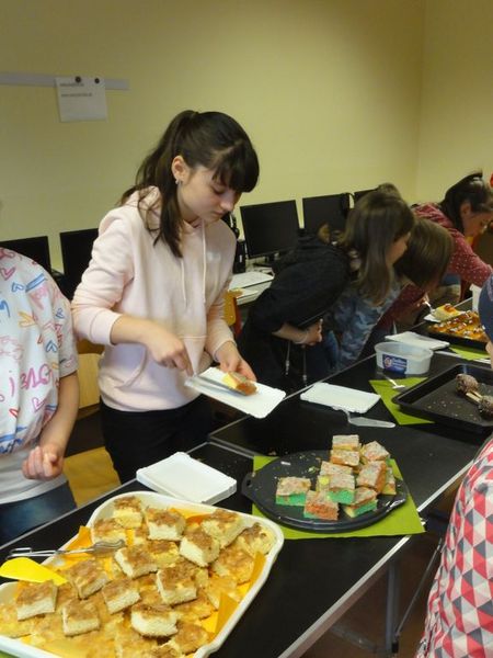 Unser Kuchenbasar fand am 6.4.22 in unserer Grundschule im Computerraum statt. Die Kinder und Eltern unserer Klasse haben fleißig gebacken, vorher haben wir Aushänge gemacht und Handzettel verteilt.