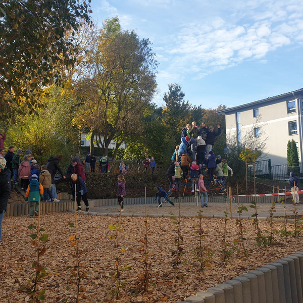 Unser Garten erstrahlt in neuem Glanz! Am 1. Dezember 2025 wurde die Umgestaltung offiziell eröffnet. Kinder können sich nun über ein spannendes neues Klettergerüst in Form einer Kletterspinne freuen.