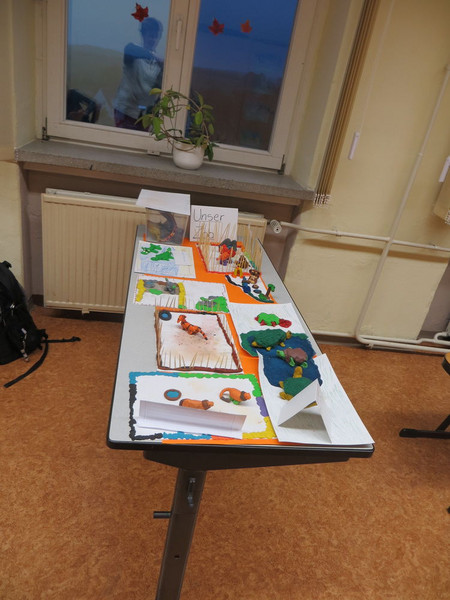 Sie bastelten aber auch Tiere wie z.B. Igel, damit dachten sie sich dann eine Geschichte aus und spielten sie der Klasse vor.Lukas