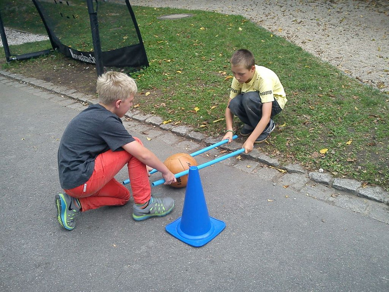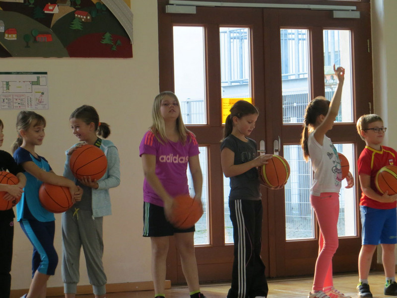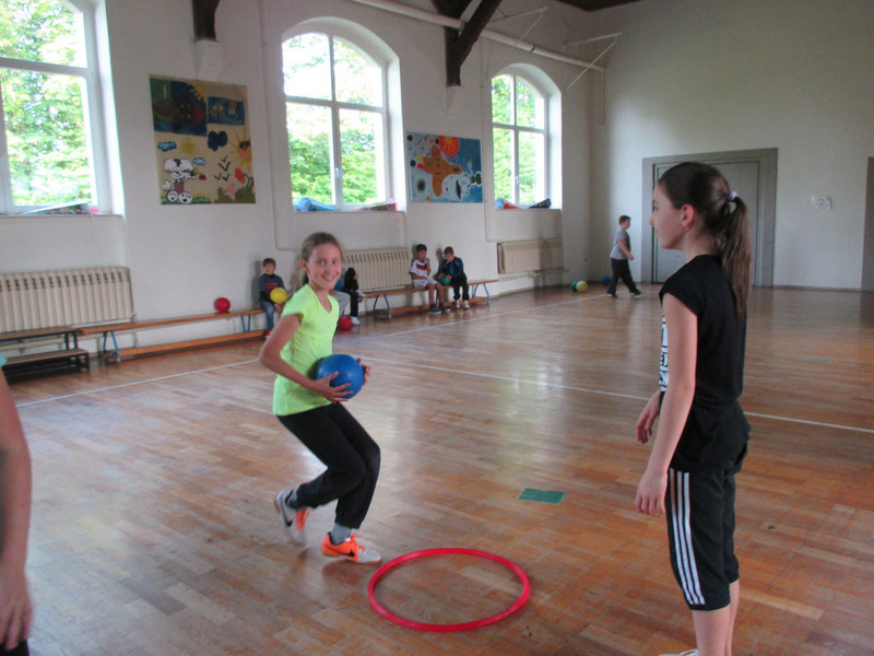 Alle Gruppen gingen zu verschiedenen Stationen, testeten viele Sportarten und spielten verschiedene Ballspiele. Besonders cool war Fußball bei Herrn Baldauf und Herrn Weicgelt von Blau-Weiß Röhrsdorf, aber auch Basketball machte Spaß. Die Klassen 1 und 2 durften sogar mit Herrn Lippmann vom Postsportverein Hockey spielen.
