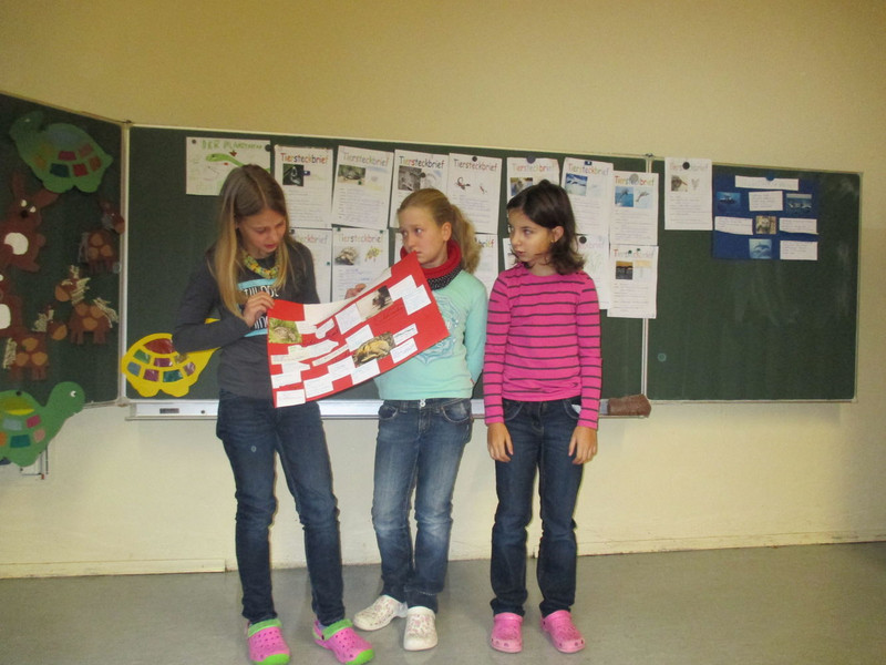 Sie ging am 17.11.14 los und endete am 21.11.14. Die Klasse 3a sollte einen Steckbrief erarbeiten und gleichzeitig einen Tierkurzvortrag daraus machen und ihn der Klasse vortragen. Sie sollten aber auch ein Plakat erstellen.