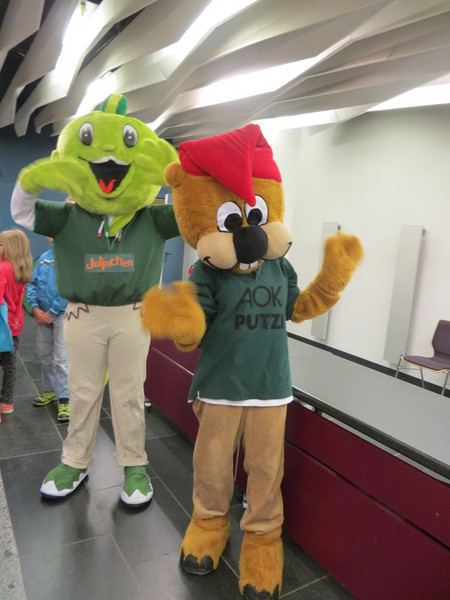Am Mittwoch, dem 22. April, fuhren alle Kinder der Grundschule Röhrsdorf mit dem Bus nach Chemnitz, um das neue Theaterstück der AOK „Henrietta und die Schatzinsel“ anzusehen. Am Eingang begrüßten uns der Pirat Jack und die beiden AOK Maskottchen Jolinchen und Putzi.
