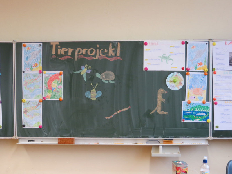 Die Klasse 3a hat Tiere gebastelt, einen Igel zum Beispiel oder eine Schildkröte, einen Hund oder Pferde. Am Dienstag und am Donnerstag haben wir Tierspiele gespielt.Benno