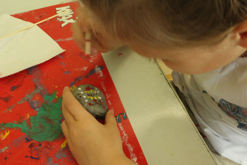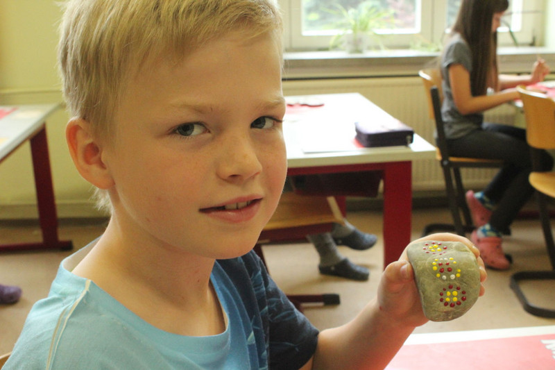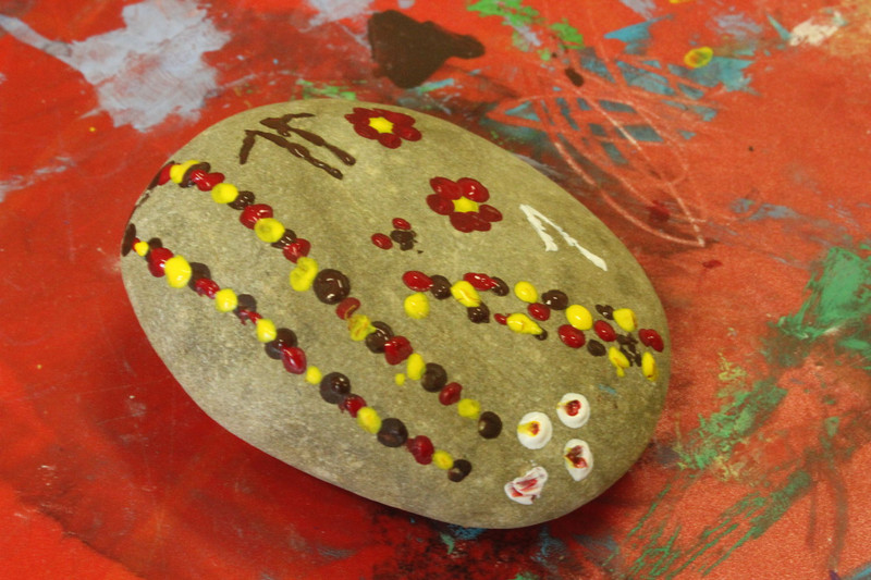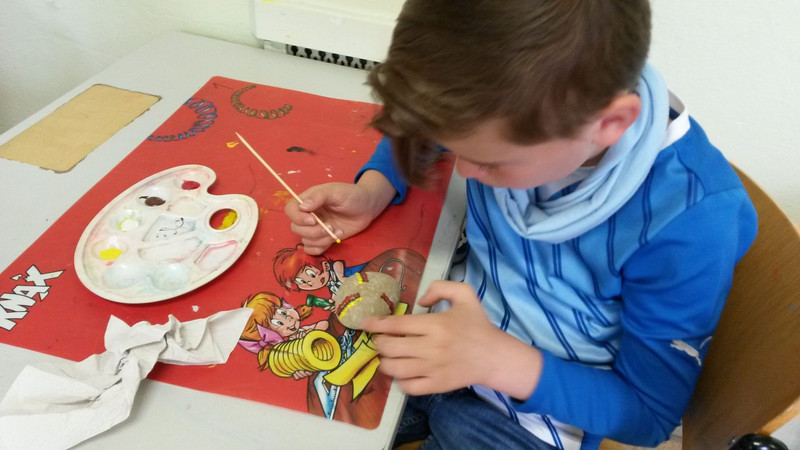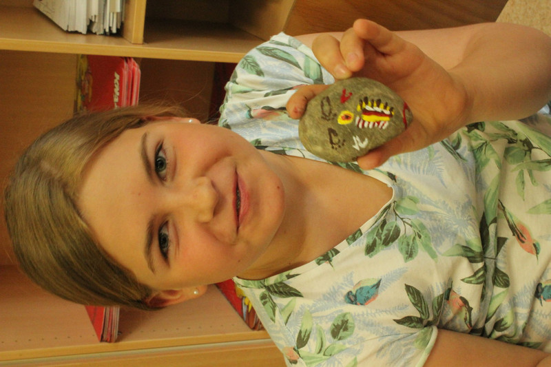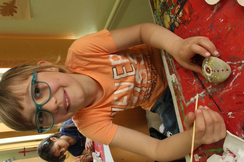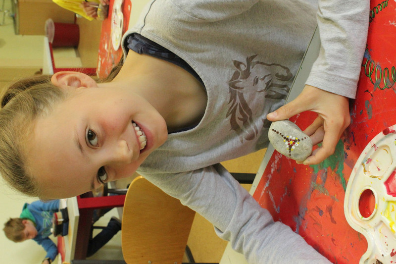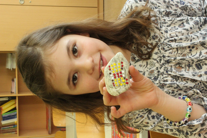 Und mir hat noch gefallen, dass ich und die ganze Schule Steine angemalt haben.