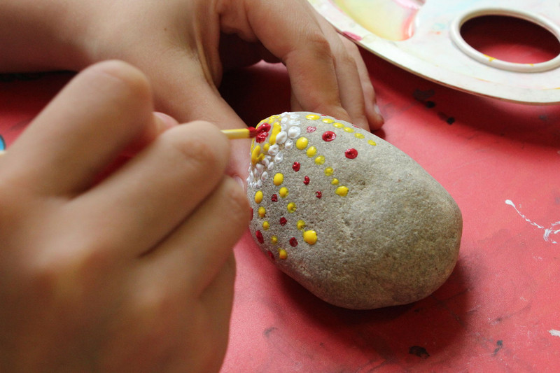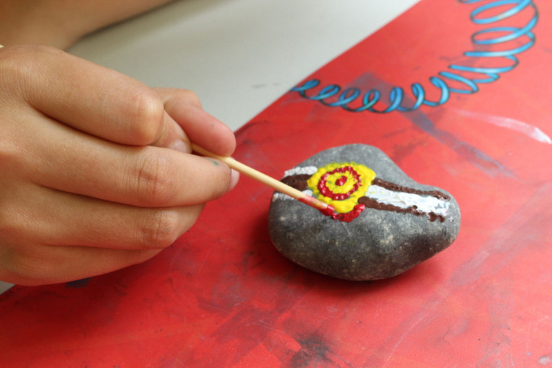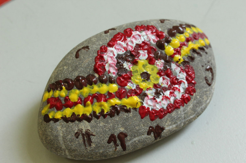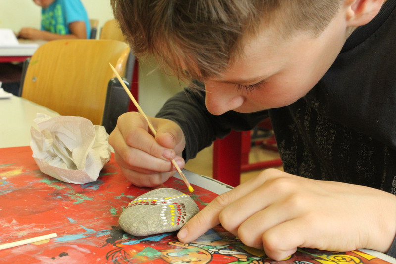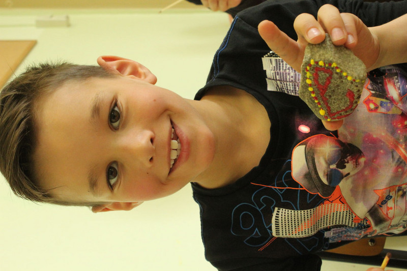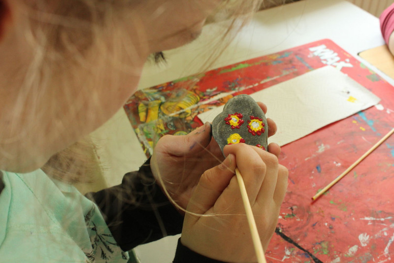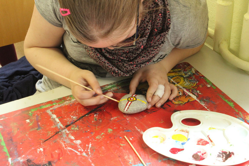 Und mir hat noch gefallen, dass ich und die ganze Schule Steine angemalt haben.