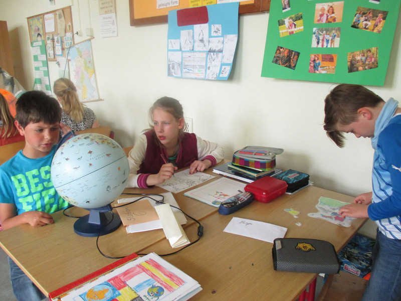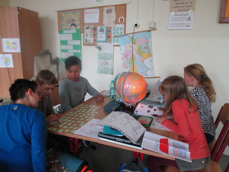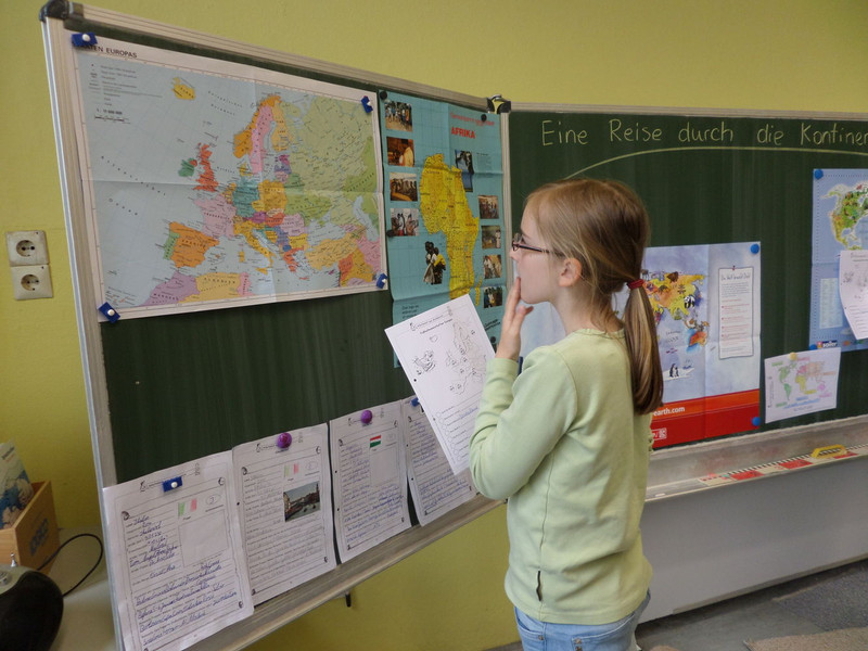 In Klasse 3 wurden Ländersteckbriefe aus Europa erarbeitet und mit vielen Details vorgestellt. Aber auch der Kontinent Afrika wurde erkundet. Die Klasse 4a konnte sich bei einem „Asientag“ besonders mit Thailand beschäftigen und in der Klasse 4b wurden neben dem Vorstellen von Kontinenten durch Schüler auch Globen gebastelt.