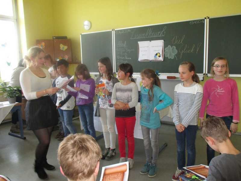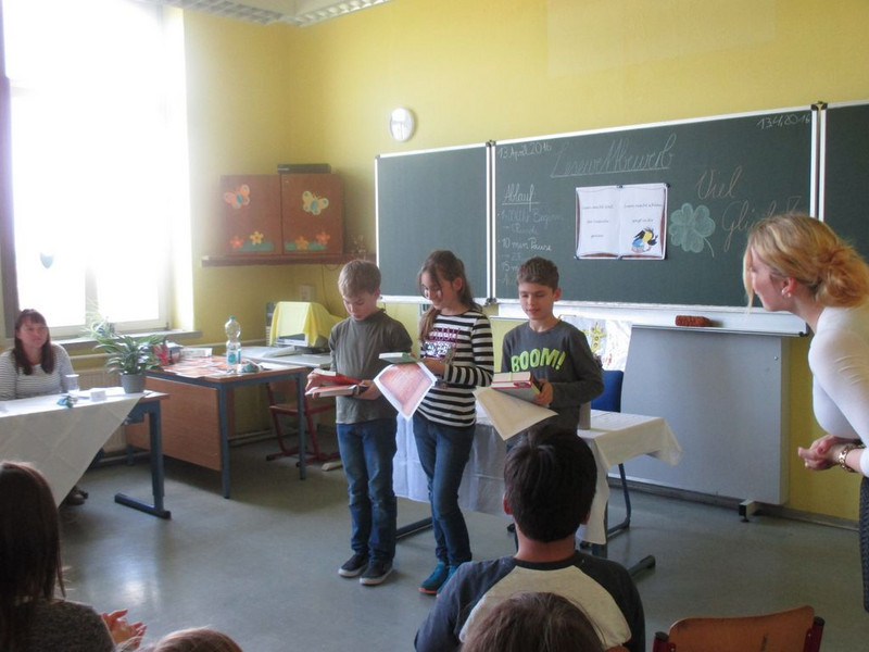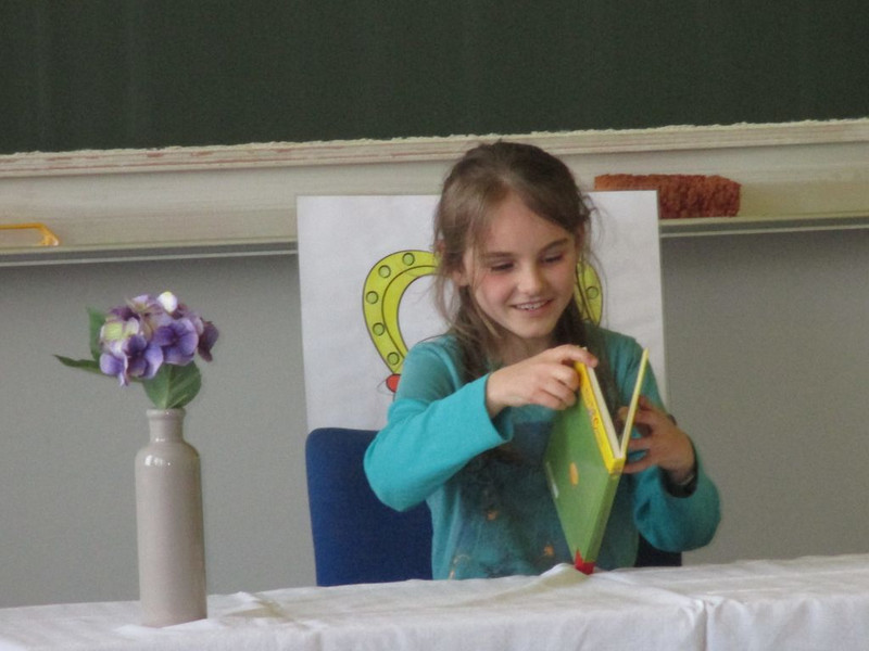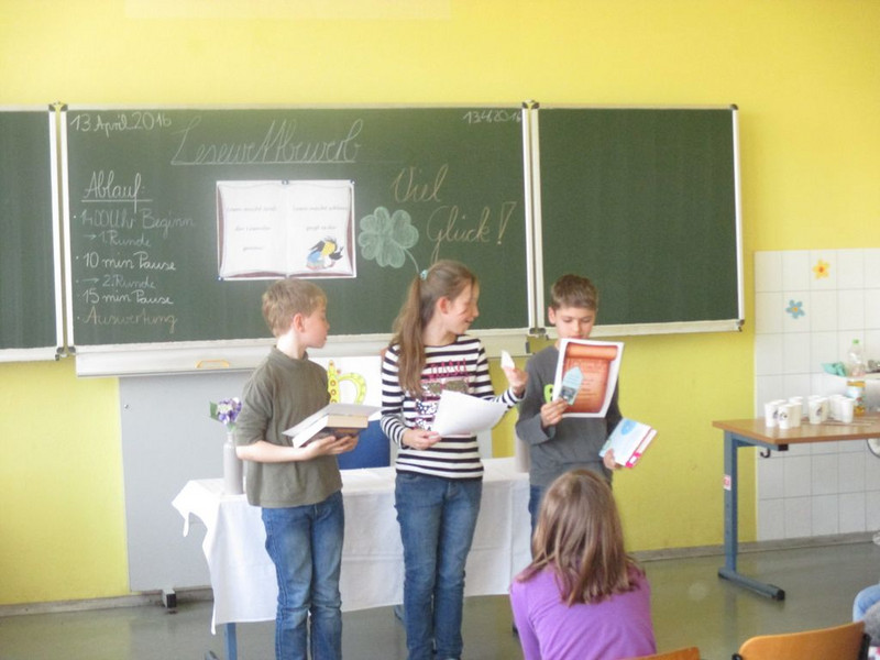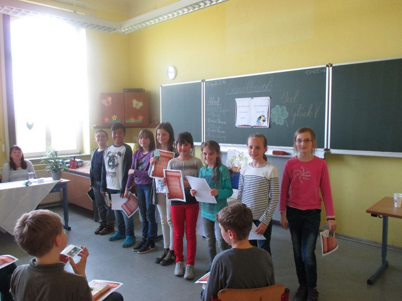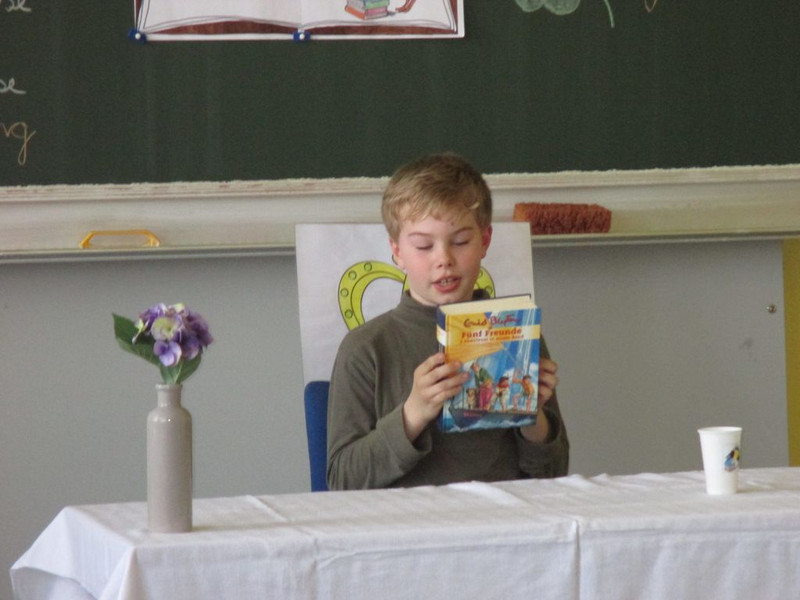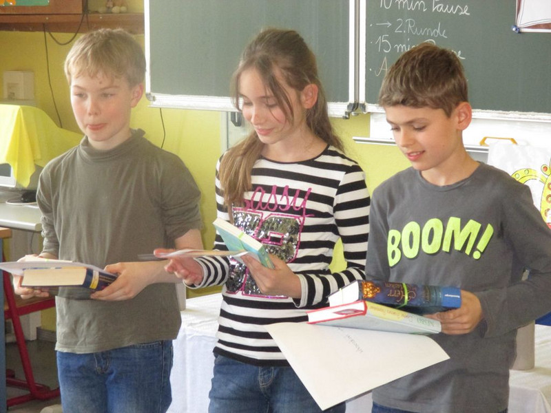 11 Kinder trauten sich an den Start, um ihr selbstgewähltes Buch vorzustellen und daraus vorzulesen. Im Bücherclub wurden die Kinder auf diesen Wettbewerb vorbereitet. Die Aufregung war riesengroß. Mitschüler, Eltern und Lehrer lauschten gespannt den Geschichten. Geschickt moderierte die Organisatorin, Miriam Böhmig, den Wettbewerb. Schnell zeigte sich, dass es eigentlich nur Gewinner geben dürfte, da alle Kinder durch eine souveräne Leseleistung überzeugten.