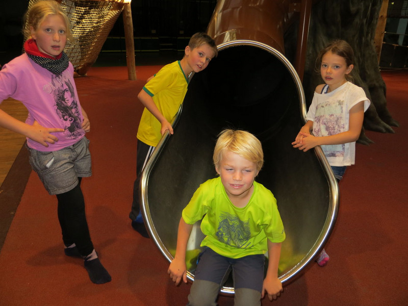 Die ganze Grundschule war im Kuddeldaddeldu. Die Schüler sind dahin gelaufen, ohne Pause. Am liebsten war ich im Baumhaus und bin dort rumgeklettert und zwei mal gerutscht.