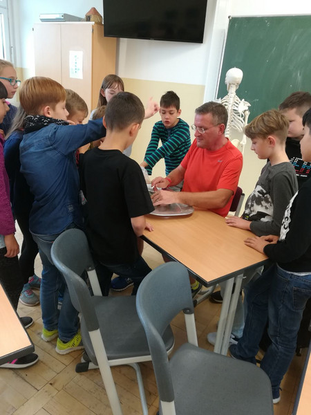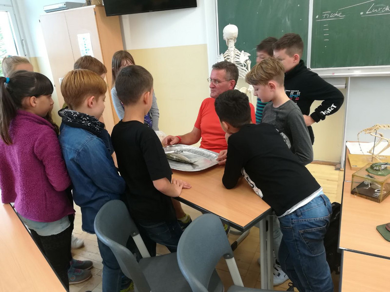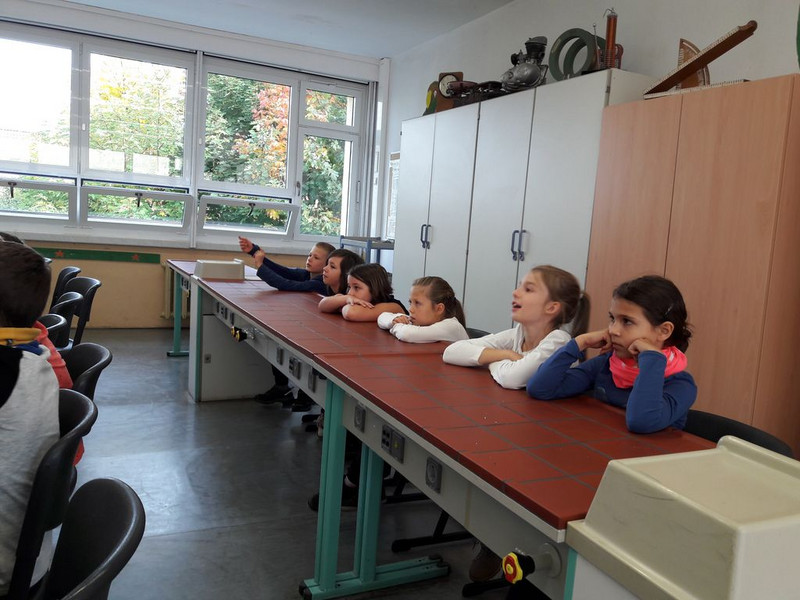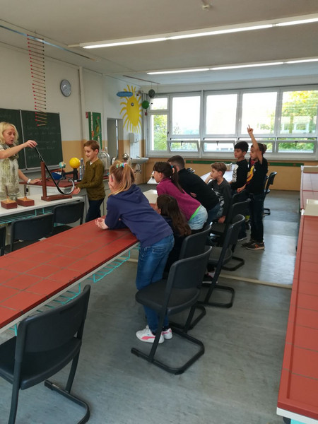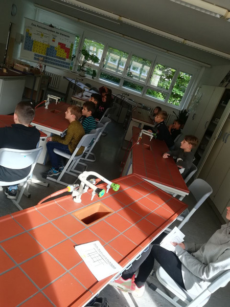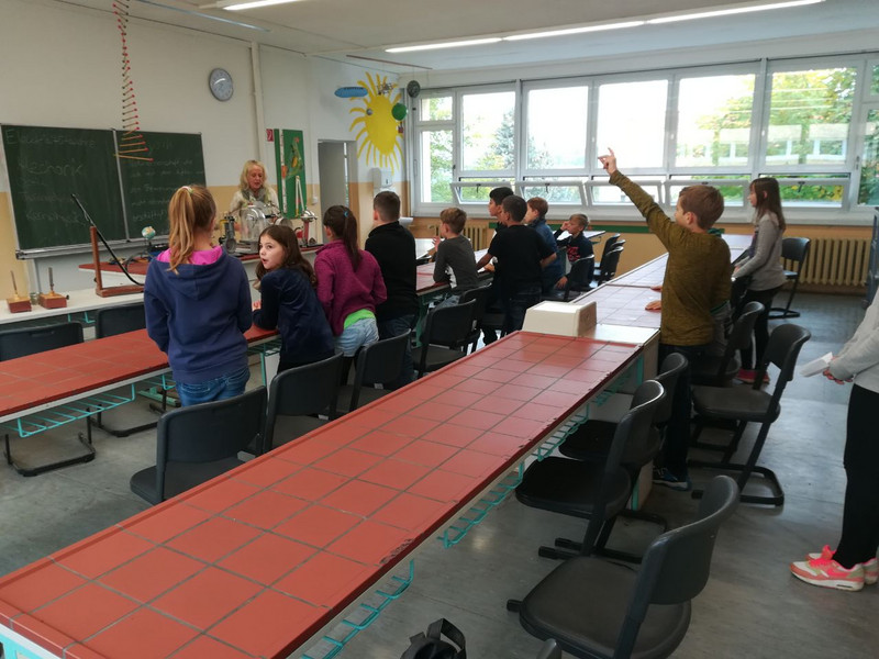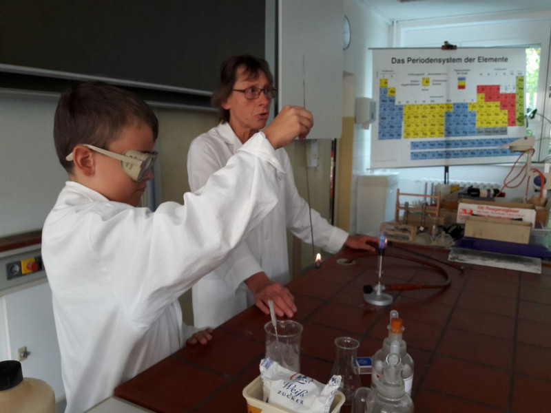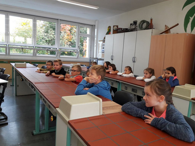 Wir fuhren dahin, weil wir in den Schnupperunterricht eingeladen worden waren. In Informatik haben wir uns in Computerspielen getestet. In Physik zeigte man uns viele Versuche und zum Schluss konnten wir alle einen Dickmann essen. In Chemie haben wir mit Chemikalien und mit Feuer gearbeitet. Der Biologielehrer zeigte uns das Innere von einer Forelle.