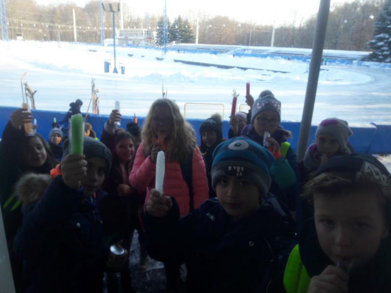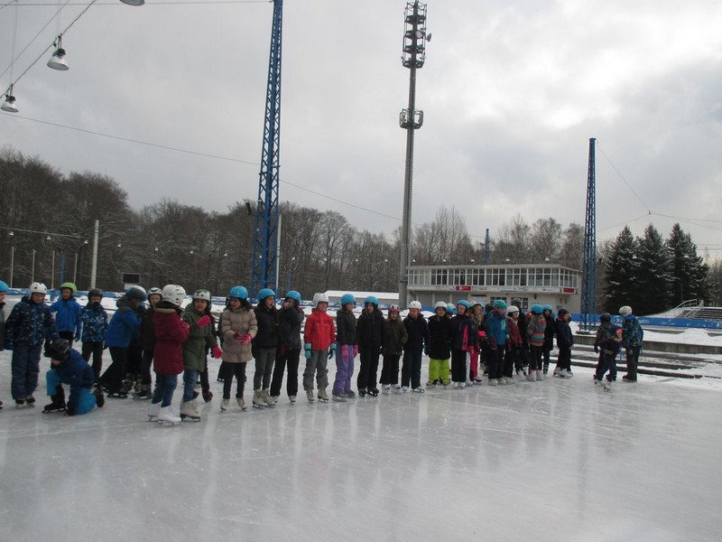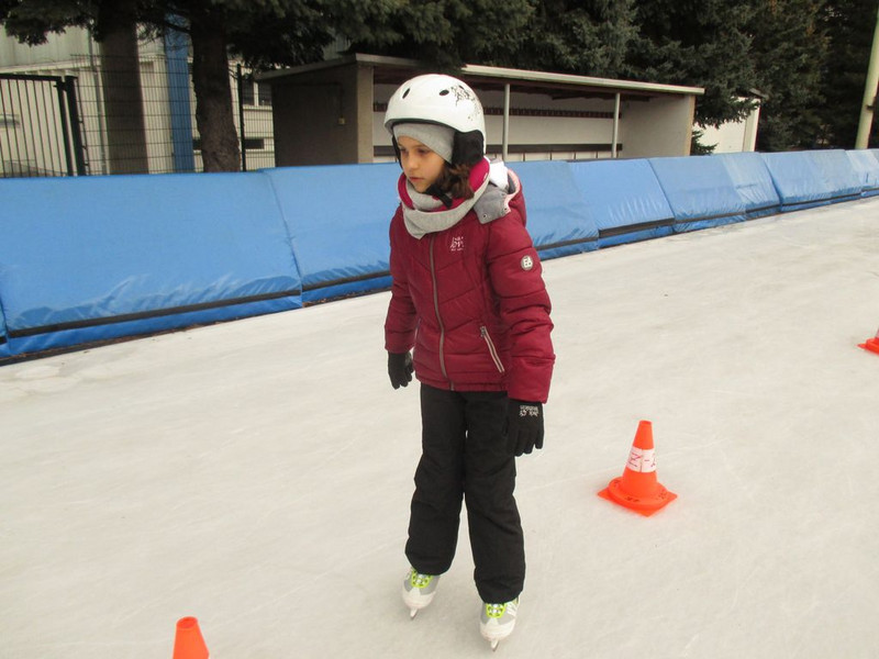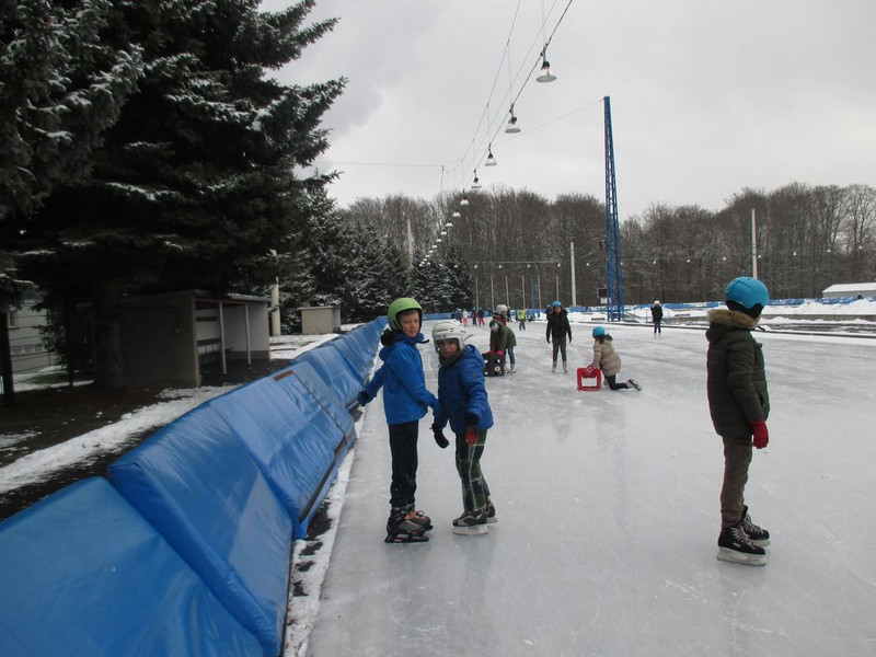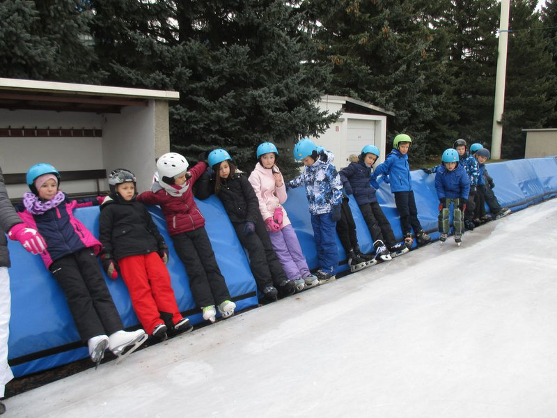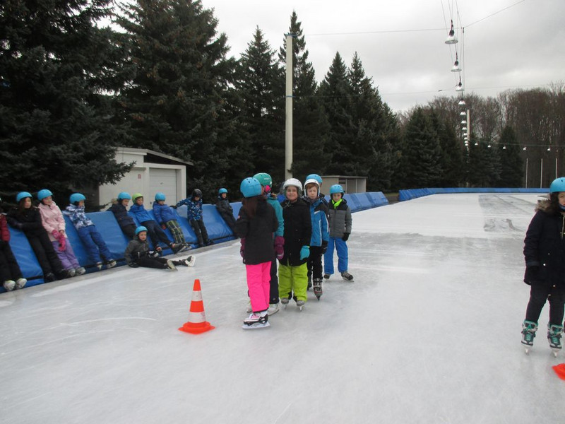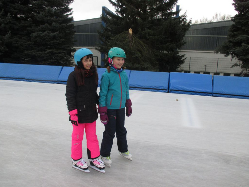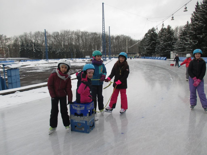 Es war am Anfang schwer, aber mit der Zeit sind wir besser geworden. Wir wurden am Anfang in drei Gruppen aufgeteilt: die erste Gruppe waren die guten Eisläufer, die zweite Gruppe waren die, die es schon gut konnten und die dritte Gruppe waren die, die es noch nicht konnten. Wir haben auch viele Spiele gespielt und oft Wettrennen gemacht. Herr Landgraf hat uns auch viel unterstützt. Wir sind oft mit Musik freigelaufen. MARLENE und JULIE