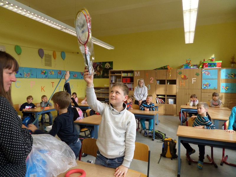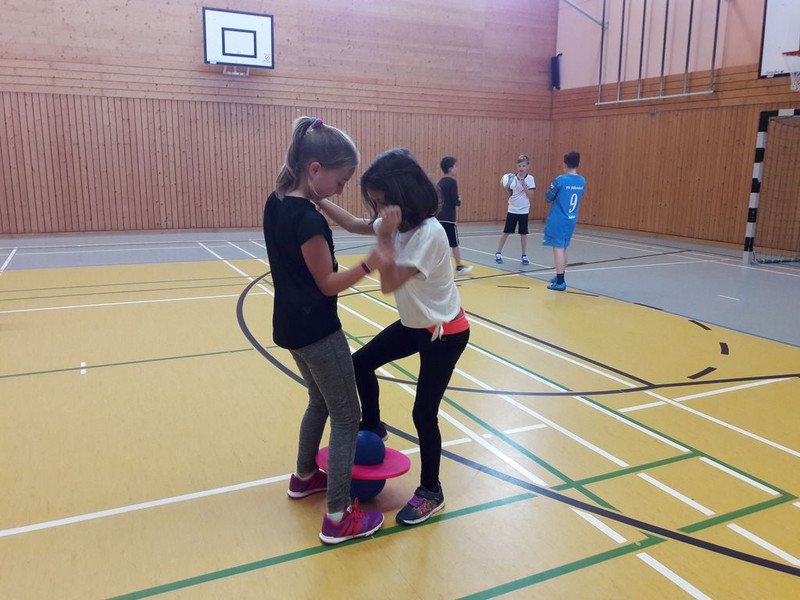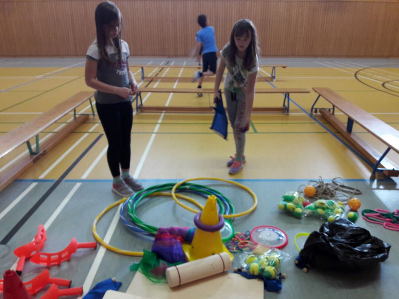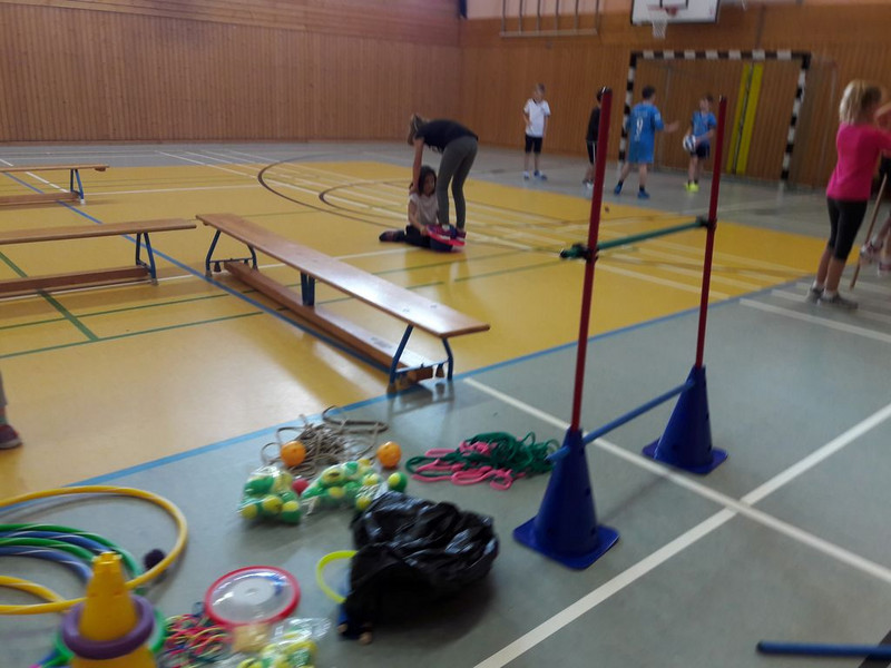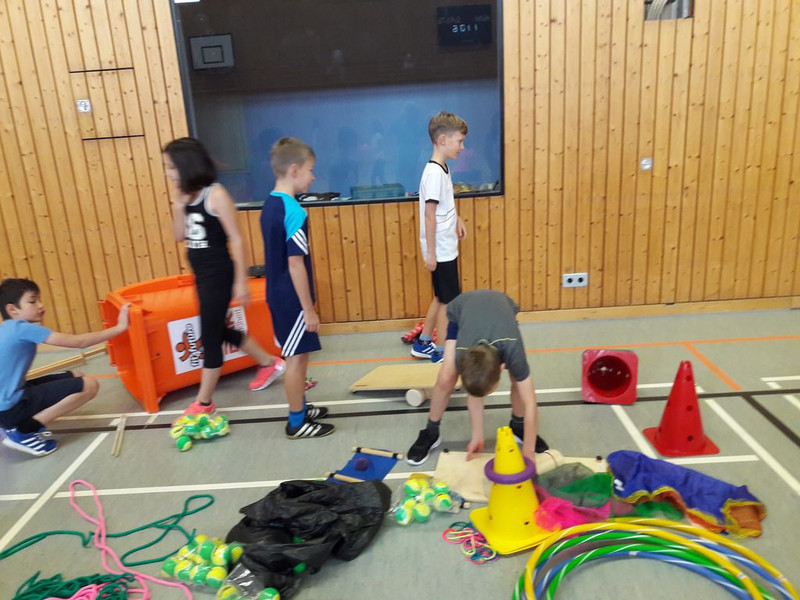 Von der Stiftung erhielten wir eine Spieletonne, die u.a. Stelzen, Tennisschläger, Jongliertücher und Balancebretter enthielt. Im Rahmen der Projektwoche können die Schüler die Sportgeräte ausprobieren und danach stehen sie allen Kindern im Sportunterricht zur Verfügung.