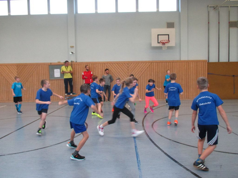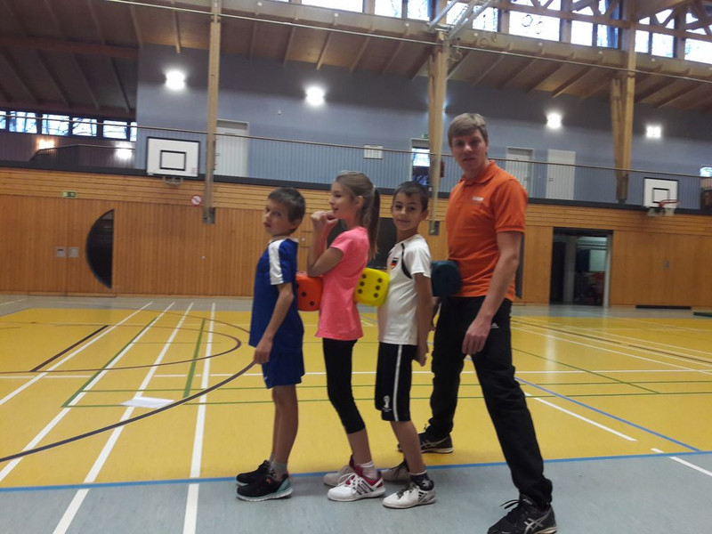 Am 11. 01.2018 waren Joel, Collin , Oli, Mika, Paul.M , Vanessa, Amelie, Tim , Paul.W, Sayan , Benjamin, Marlene aus der Klasse 4 und Nick aus Klasse 3 sowie Frau Pröger und Frau Albrecht beim Zweifelderball-Turnier in der Geschwister-Scholl-Oberschule. Im letzten Spiel haben wir knapp verloren und sind so leider nur auf den 6.Platz gekommen, aber es hat Spaß gemacht und das ist die Hauptsache!!! Collin und Paul.W haben beim Wissenstest gewonnen.