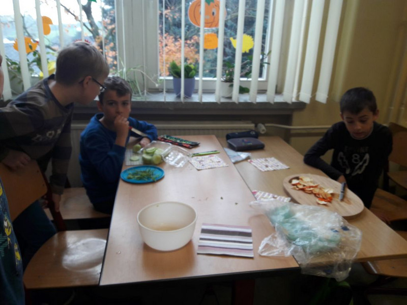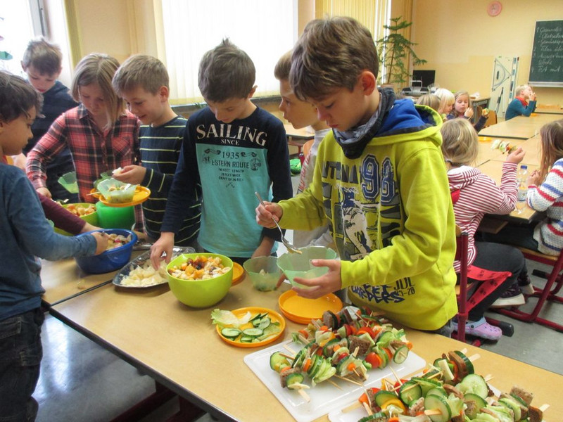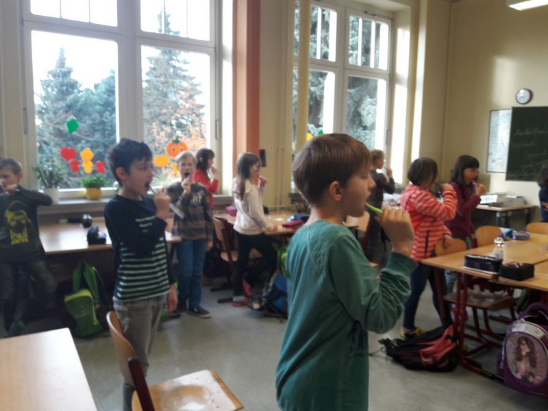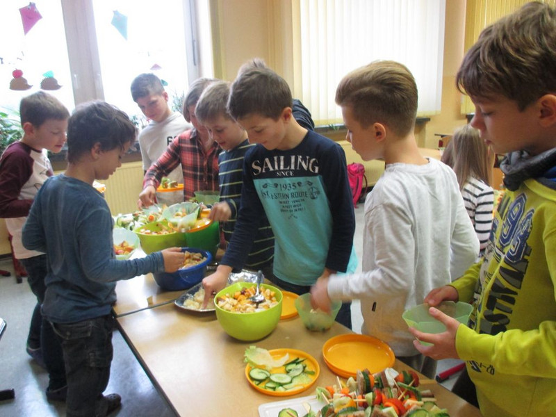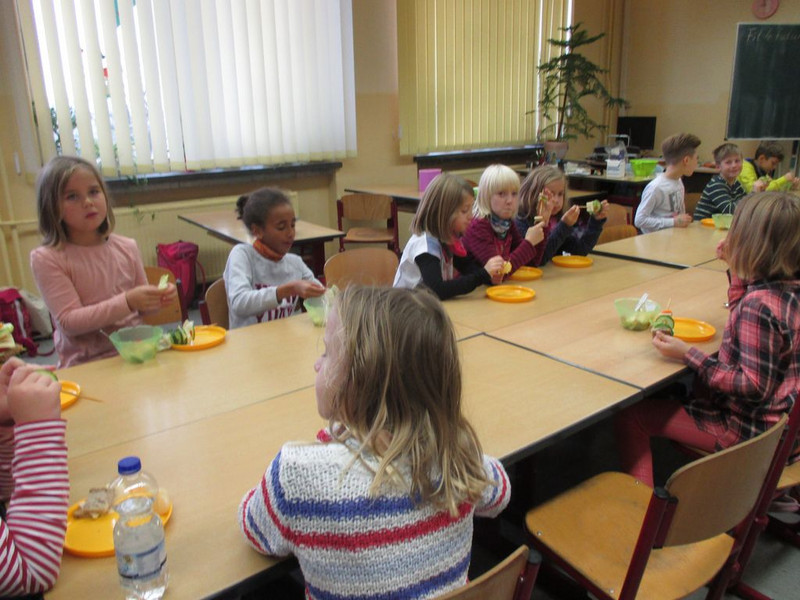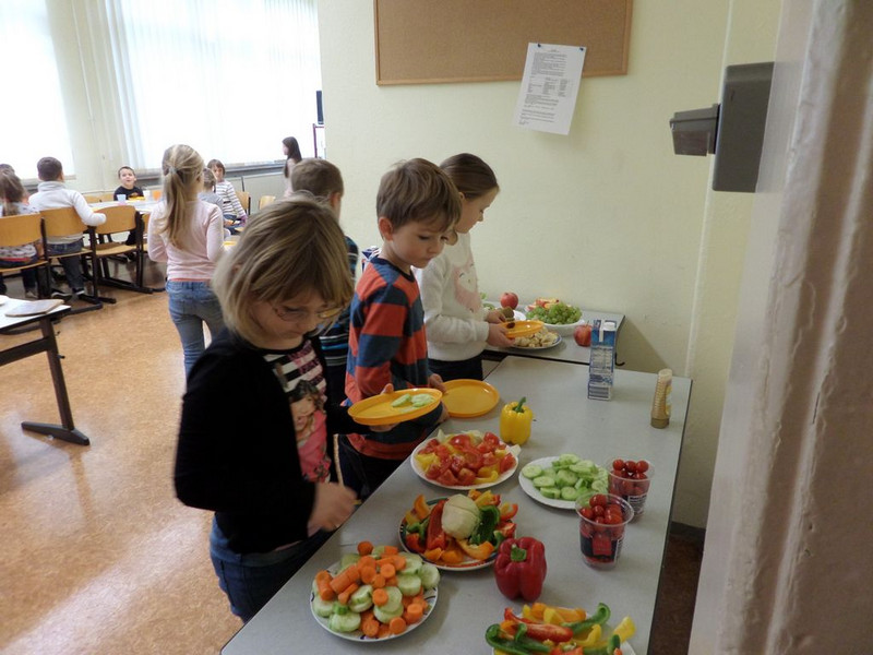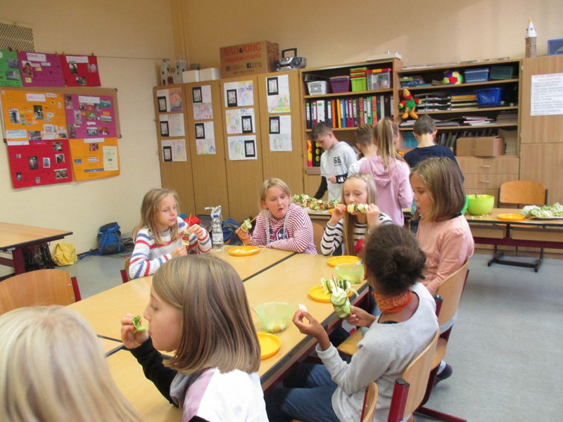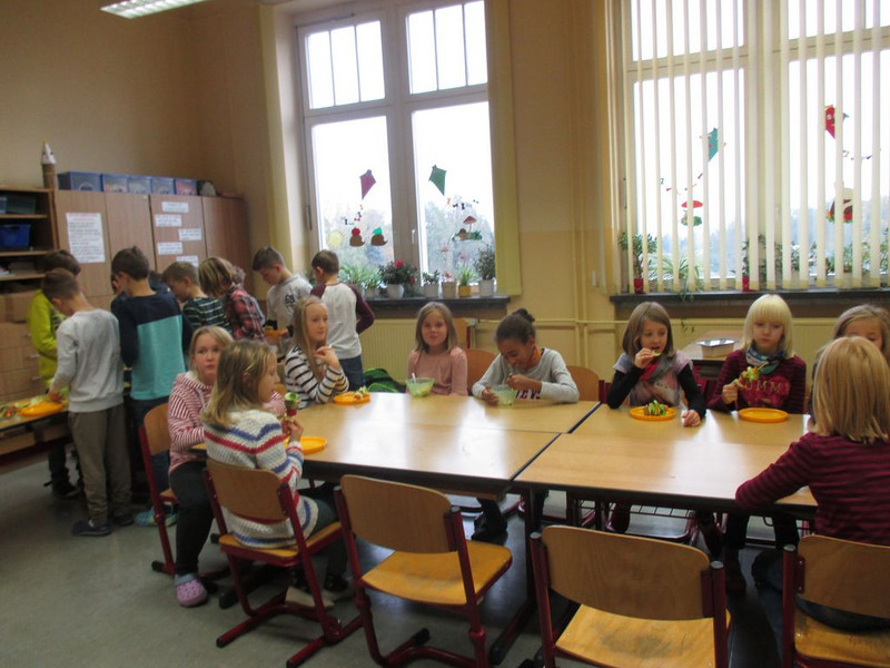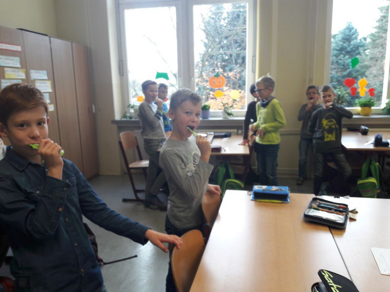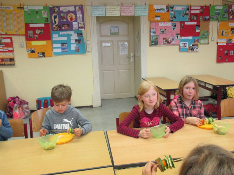 Wir lernten gesunde Sachen.Es kam der Zahnarzt zu uns und wir aßen gesunde Sachen. Wir machten auch viel Sport.
