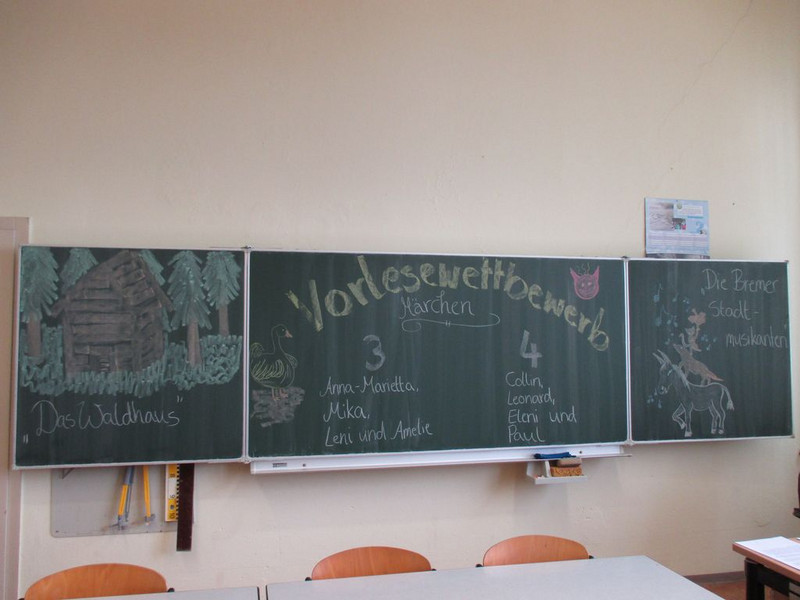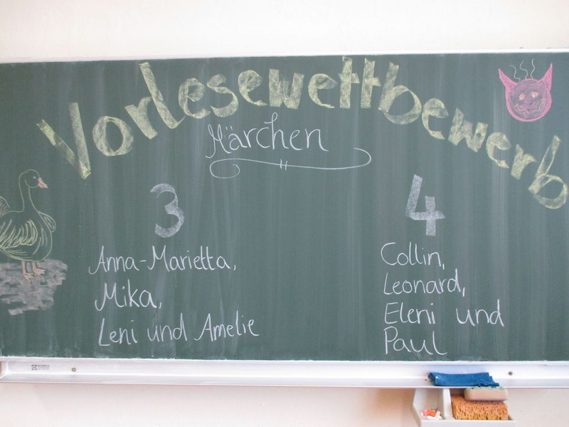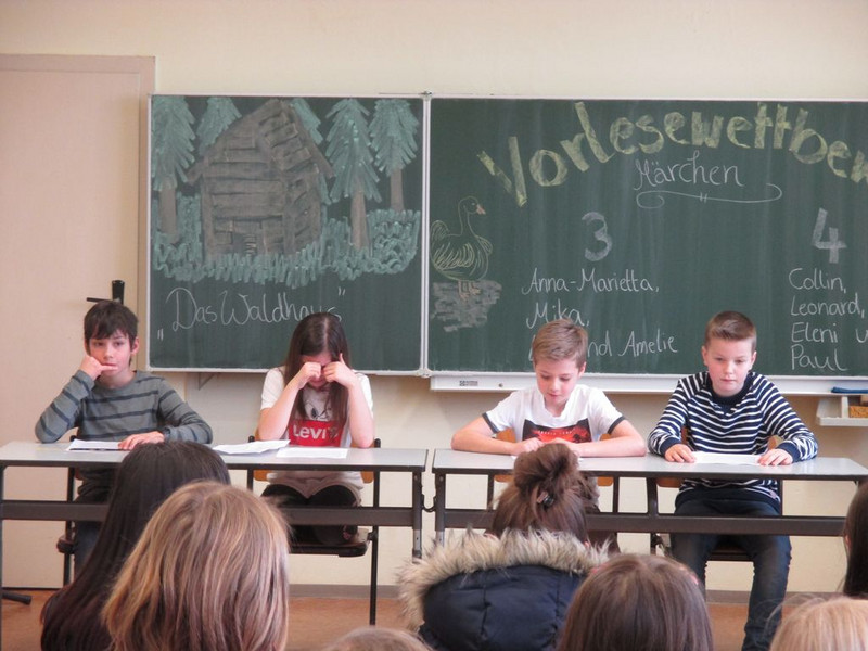 Am 20.03.2018 fand nun schon zum dritten mal an unserer Grundschule der Vorlesewettbewerb der Klassen 3 und 4 statt, in diesem Jahr unter dem Motto „Märchen“. Nach einer Vorauswahl in den Klassen starteten je Klassenstufe 3 und 4 vier Schülerinnen und Schüler.