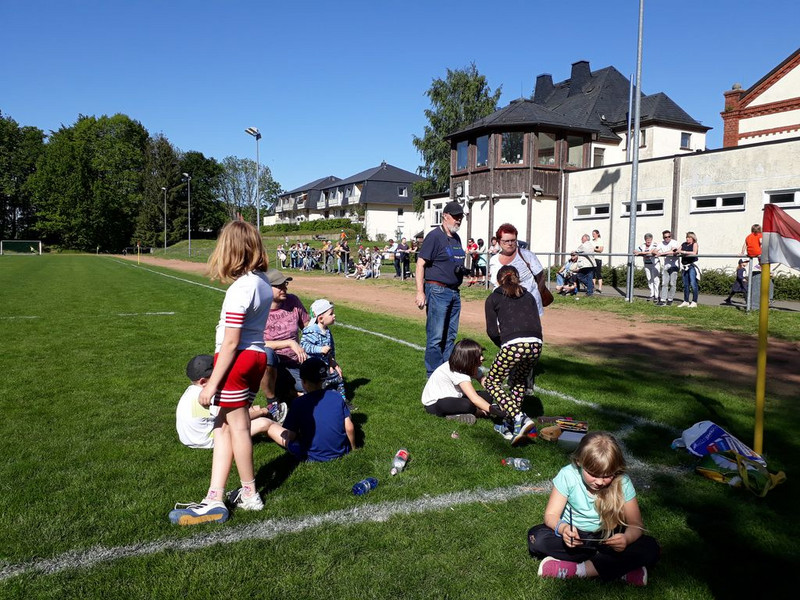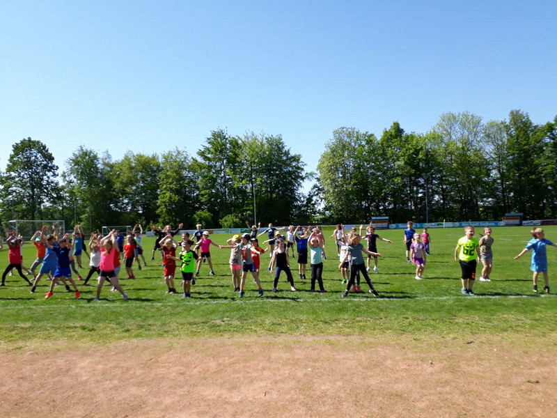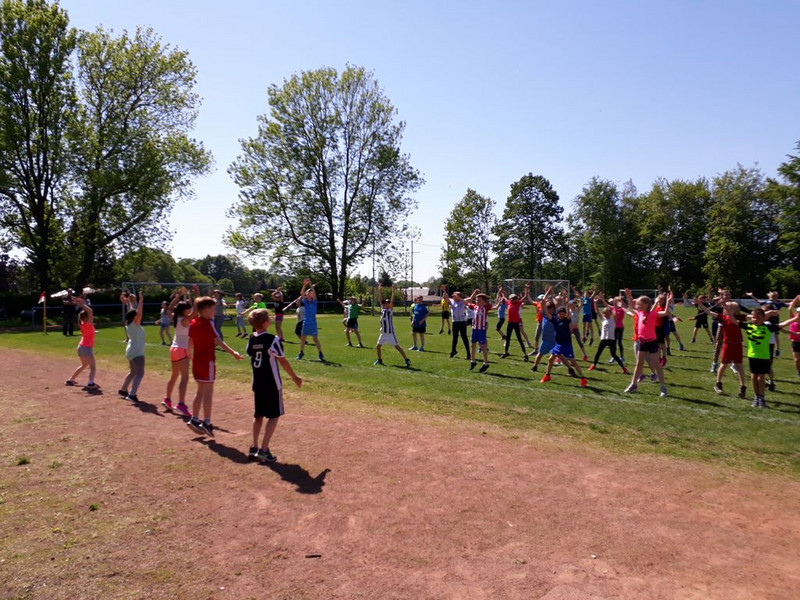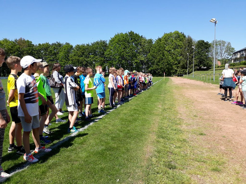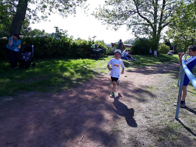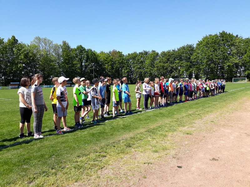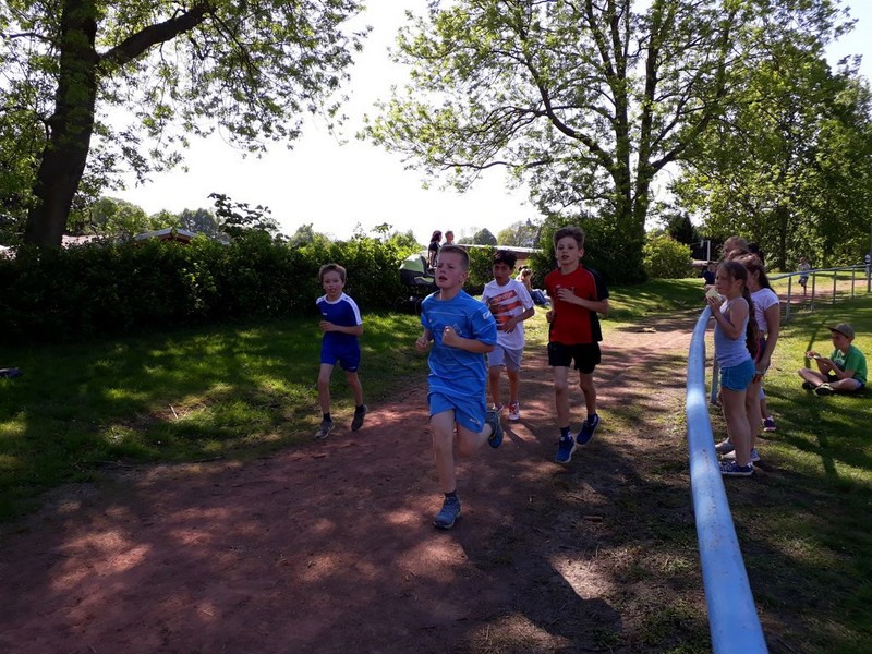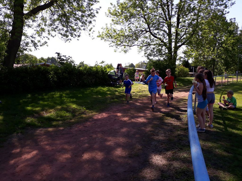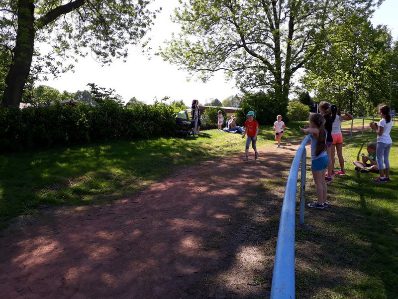 Am 7.05.2018 war es dann soweit. Die Sonne strahlte vom blauen Himmel und bei angenehmen Temperaturen versammelten sich alle Schüler und zahlreiche Zuschauer auf dem Sportplatz „Am Volkshaus“. Nach einer gemeinsamen Erwärmung starteten unsere Kinder zum Rundenlaufen. Kaum zu bremsen waren viele unserer Schüler, um so viele, wie nur möglich, Runden zu erreichen. Absoluter Rekord waren 31 Runden....!!!