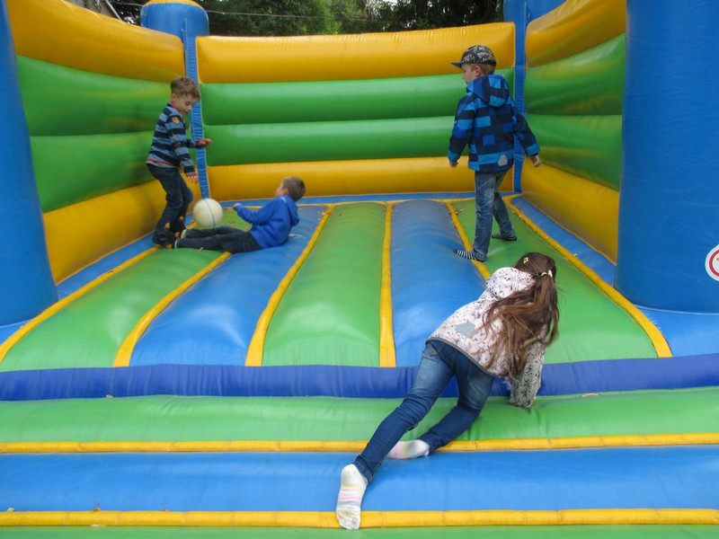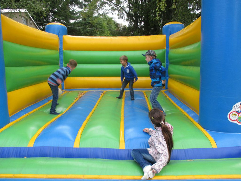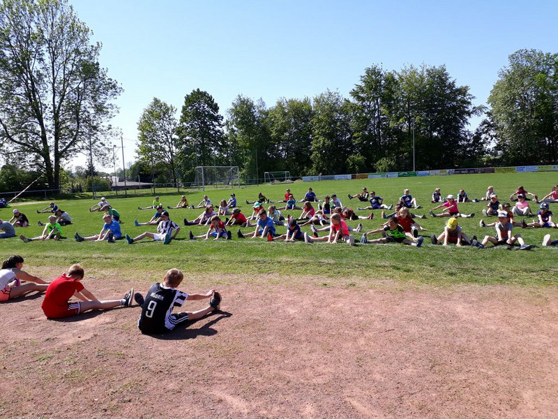 Um sich die Wartezeit bis zum Start zu verkürzen, nutzten unsere Schüler verschiedene Spielangebote der Vertreter des Fußballvereins „Blau-Weiß-Röhrsdorf“ auf dem Rasen.
