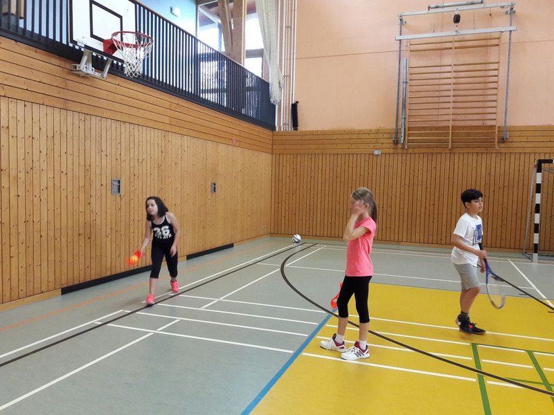 Wir haben eine „fit4future- Kiste“ bekommen und haben gespielt: Fußball, Tennis und und und...