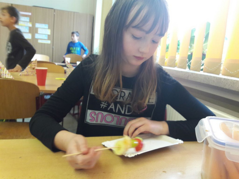 Zuletzt haben wir ein gesundes Frühstück gemacht und jedes Kind konnte ein Spiel mitbringen. Erik war da und hat mit uns Rückengymnastik gemacht.