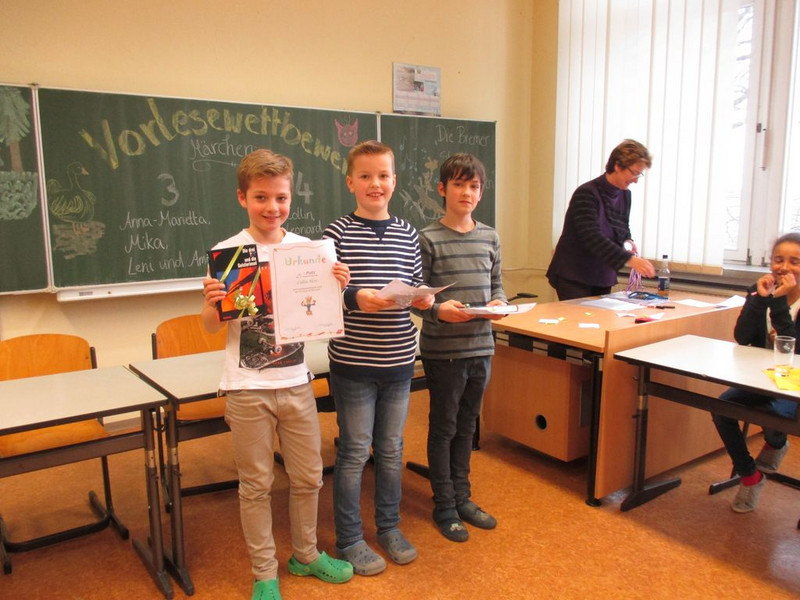 Auch die ungeübten Märchentexte „Die Bremer Stadtmusikanten“ und „Die goldene Gans“ bereiteten den Vorlesern keine Probleme. So erreichten alle Teilnehmer unterschiedlich hohe Punktzahlen und am Ende standen als Sieger fest: