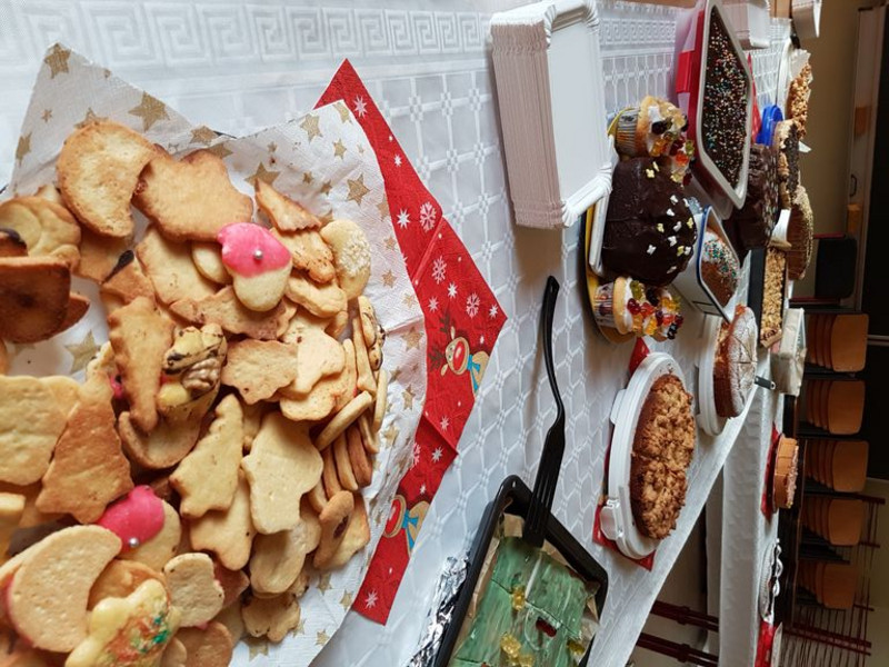 Die KUCHEN wurden von den Müttern frisch gebacken, es gab im Cafè noch Plätzchen, Schnitten, Brötchen, Muffins, Kaffee und Glühwein, die viele fleißige Helfer verkauft haben.