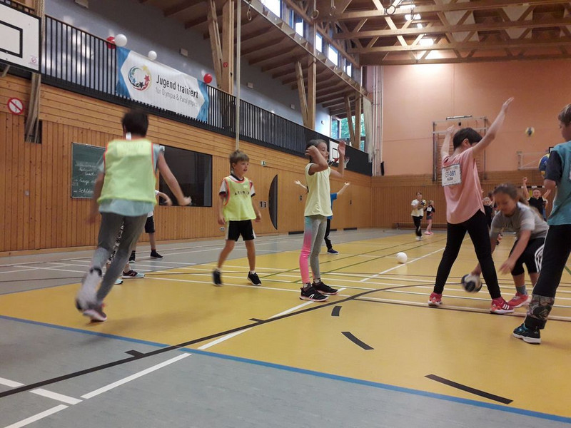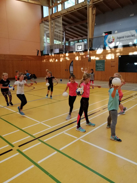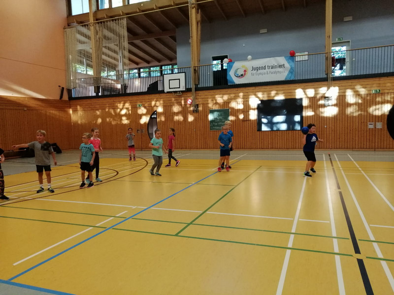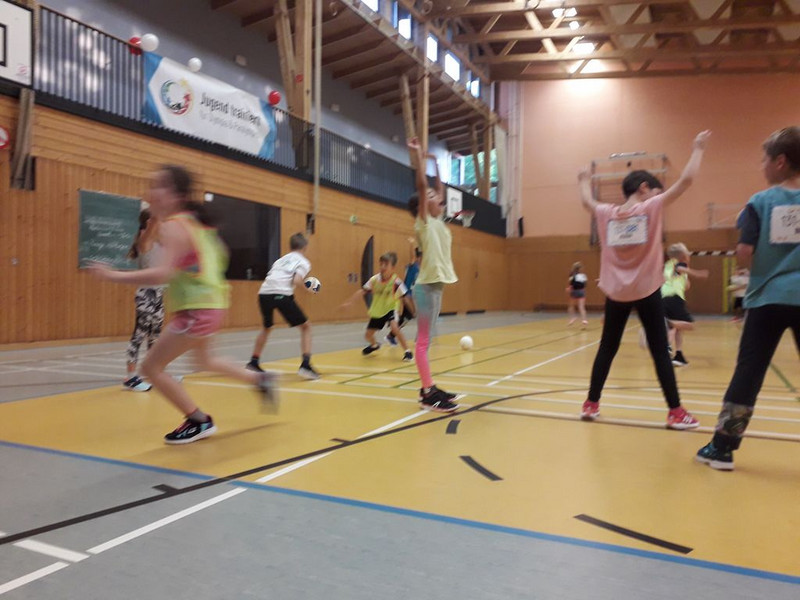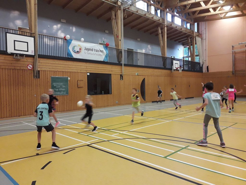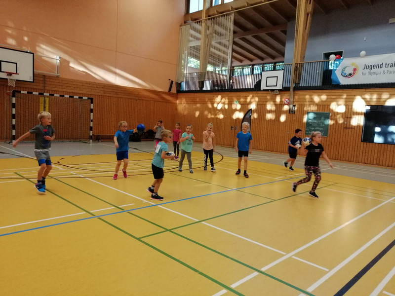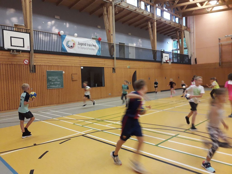 Zum Sport-Aktionstag besuchten uns die Handballer Nicolas und Tim vom SSV Chemnitz Rottluff e.V. und führten mit jeder Klassenstufe eine Einheit von 45 min. Handball durch. Alle Kinder unserer Grundschule waren viel in Bewegung und hatten dabei großen Spaß. So gelang es uns nur schwer, Fotos zu erhaschen...