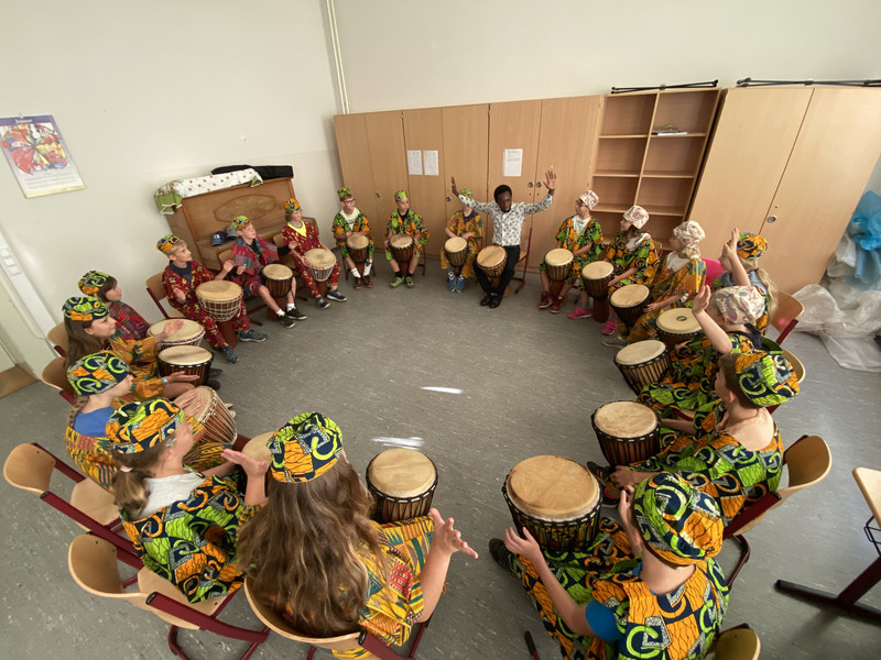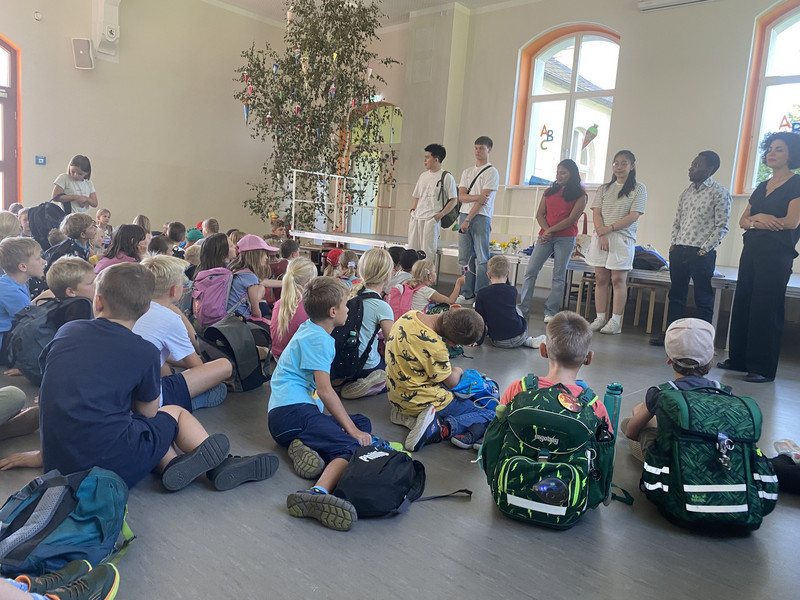Im Rahmen der Röhrsdorfer Festwoche zur Kulturhauptstadt fand in unserer Grundschule ein „Interkultureller Projekttag“ statt. Zu uns kamen viele junge Leute und stellten auf verschiedene Art und Weise ihr Land bzw. ihre Kultur vor. So konnten sich alle Kinder beim Trommeln, Origami-Falten, Zubereiten von asiatischen Frühlingsrollen, asiatischer Kampfkunst, Tanzen oder Basteln vielfältig beteiligen und ausprobieren und hatten dabei viel SPAß!!!