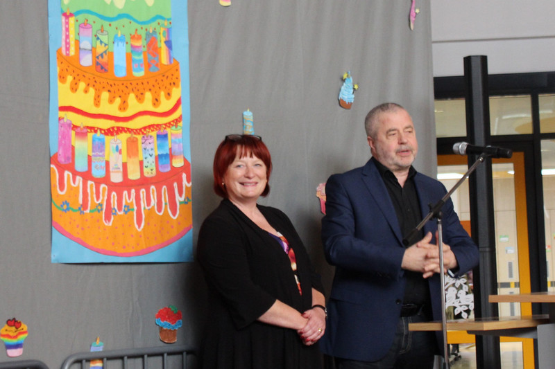 Anlässlich unseres 20-jährigen Schuljubiläums freuten wir uns, am 1. März 2024 viele ehemalige Kollegen, Mitarbeiter, Weggefährten und Mitstreiter, Vizelandtagspräsidentin Frau Andrea Dombois, Landrat Michael Geisler und OB Frau Kerstin Körner als Gäste begrüßen zu dürfen. In einer kleinen Feierstunde bei Kaffee und Kuchen gestalteten Schülerinnen und Schüler der Grund- und Förderschule ein sehr unterhaltsames, musikalisches Programm. Der ehemalige Bürgermeister von Schmiedeberg Herr Schneider, die damalige Schulleiterin Frau Fiedler sowie die ehemalige Vorsitzende des Schulfördervereins Frau Wöllner, erinnerten an die besonderen Umstände, unter denen der Bau damals zustandegekommen war. Nach dem Hochwasser 2002 wurde in Rekordzeit ein modernes, helles und kinderfreundliches Schulgebäude erbaut. In lebhaften und interessanten Gesprächen wurden die vergangenen Ereignisse wieder lebendig, ebenso wie der Stolz auf das Geleistete und die heutige kooperative Arbeit der Schulteile von Grundschule mit LRS-Stützpunkt und der Förderschule für Lernen.
